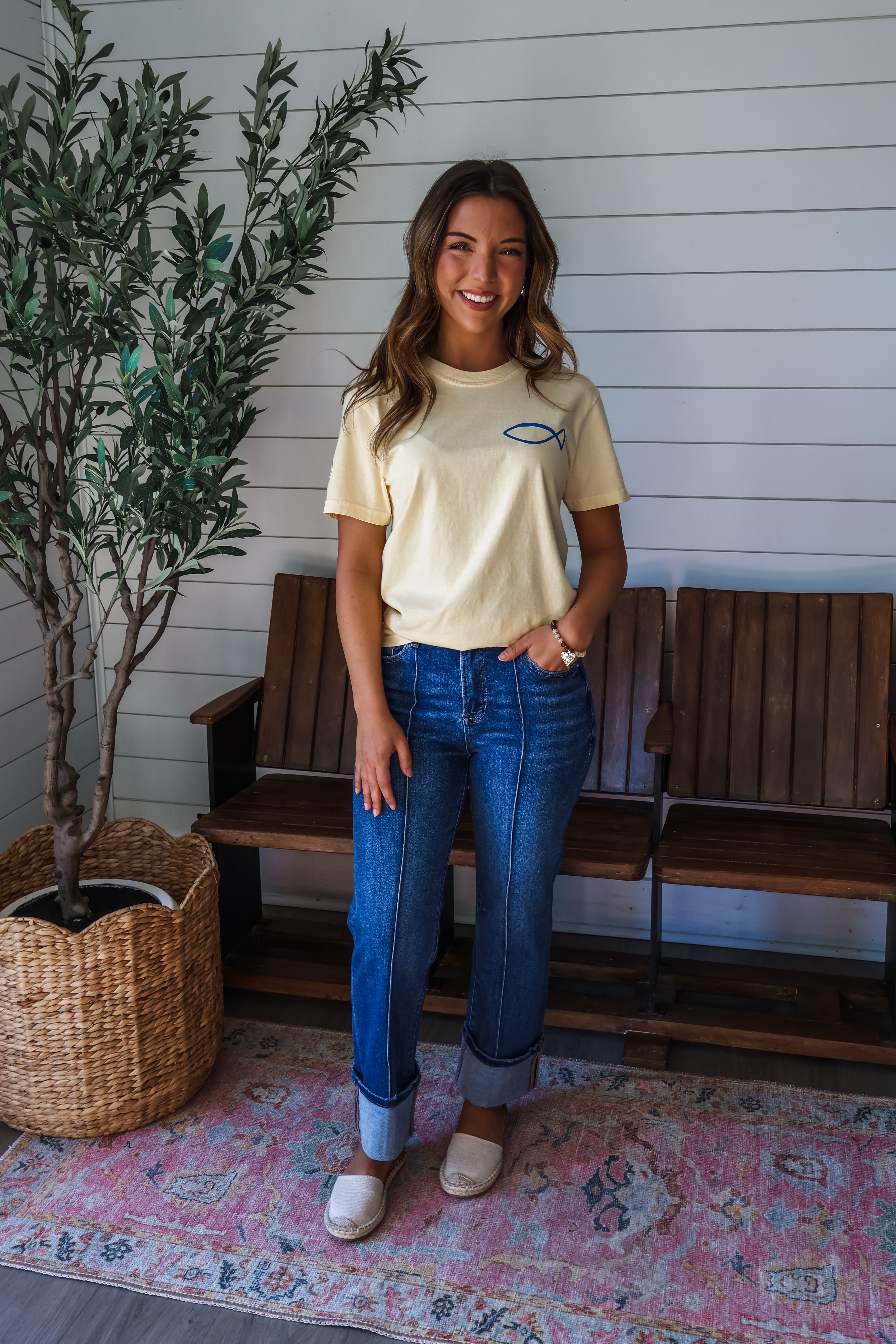 Refresh your spring style with our latest collection of faith-based graphic tees! Worn on its own, layered under woven shirts and soft cardigans, it’s a playful look that adds print and personality to your everyday wardrobe. This short sleeve knit features a ribbed band crewneck in a heavyweight garment-dyed ring spun cotton for a soft vintage feel.