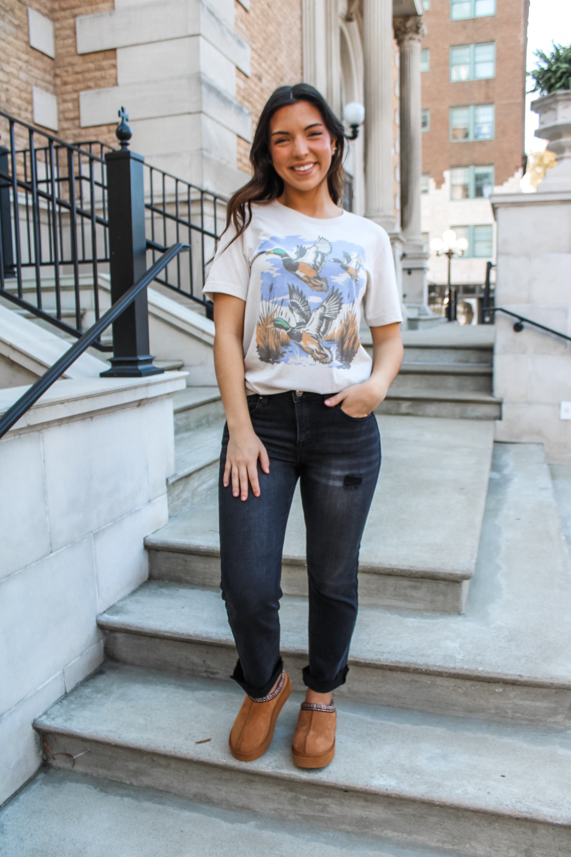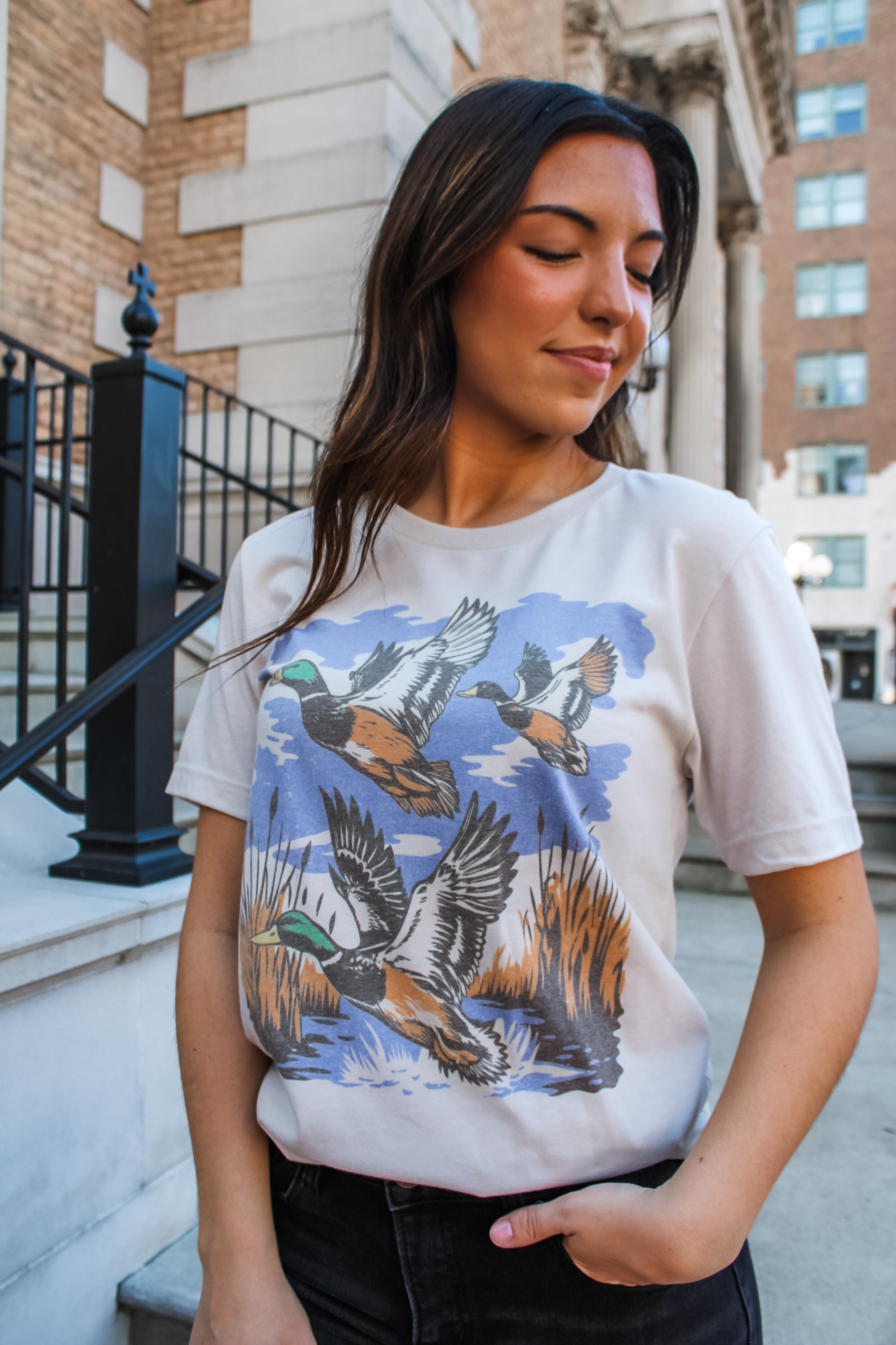 Celebrate duck hunting season with our exclusive collection of the cutest graphic tees! Worn on its own, layered under plaid shirts and chunky cardigans, it’s a playful look that adds print and personality to your wardrobe. With a classic crewneck and relaxed fit in a soft, pre-shrunk cotton knit.