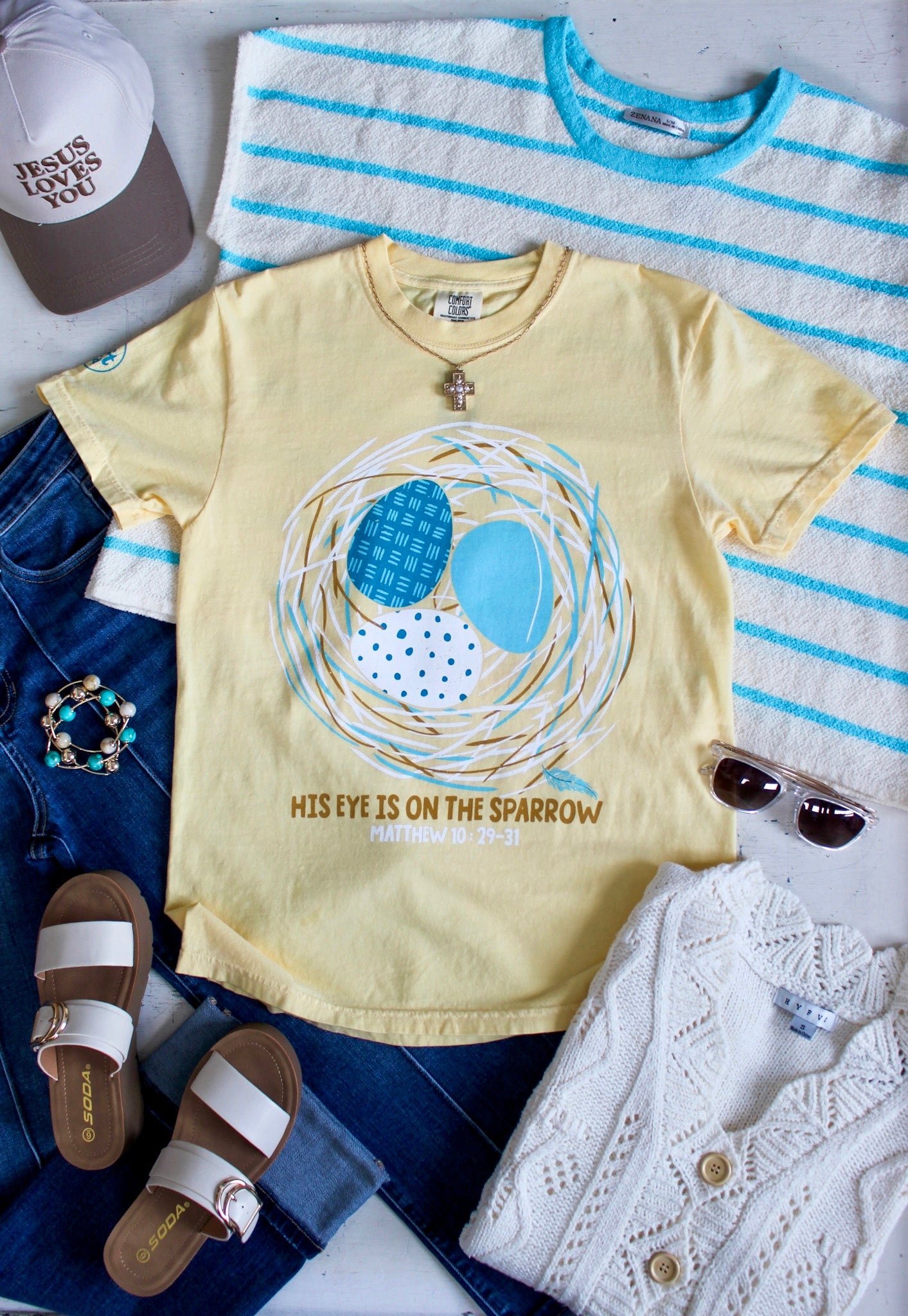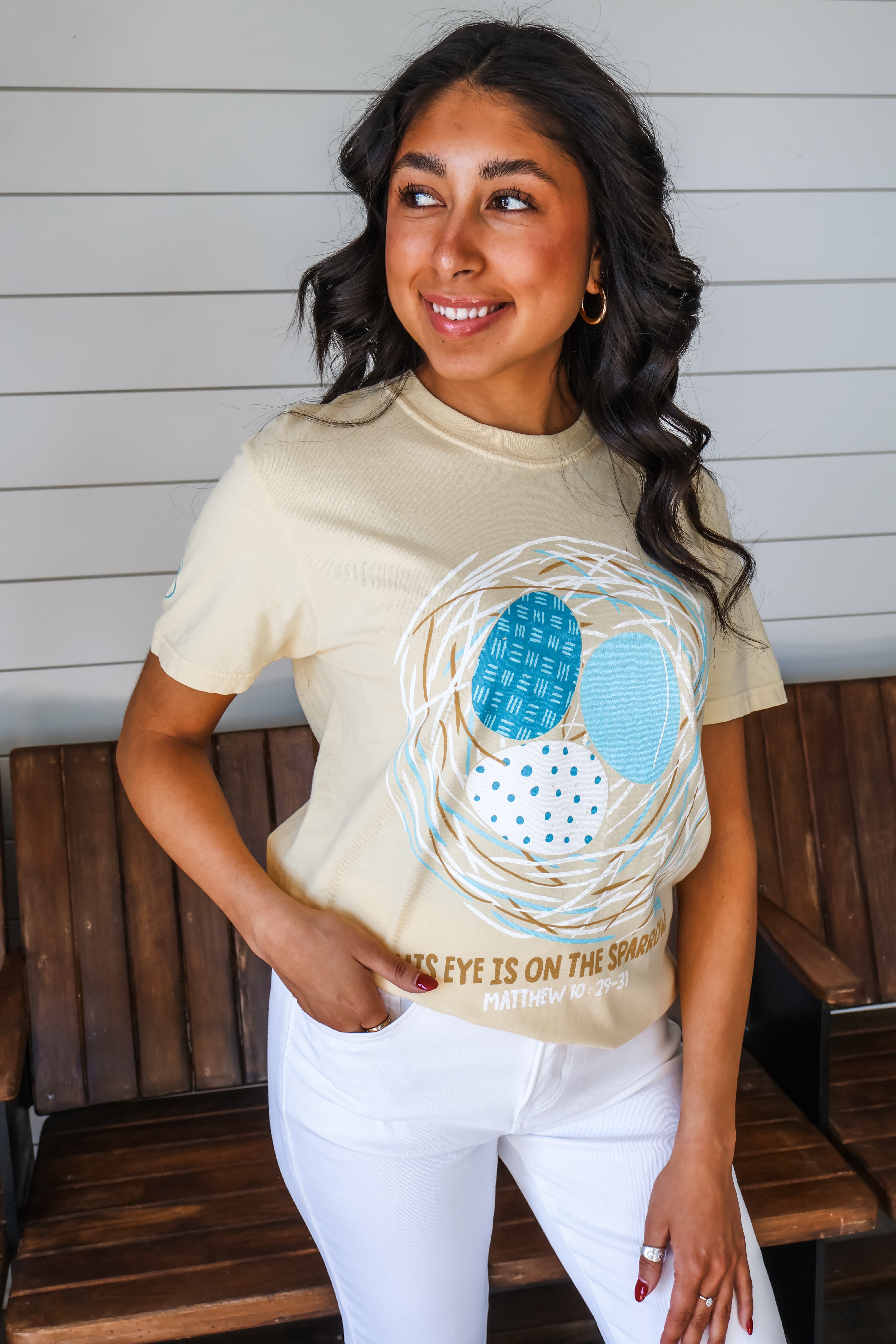 His Eye Is On The Sparrow Graphic Tee • Butter