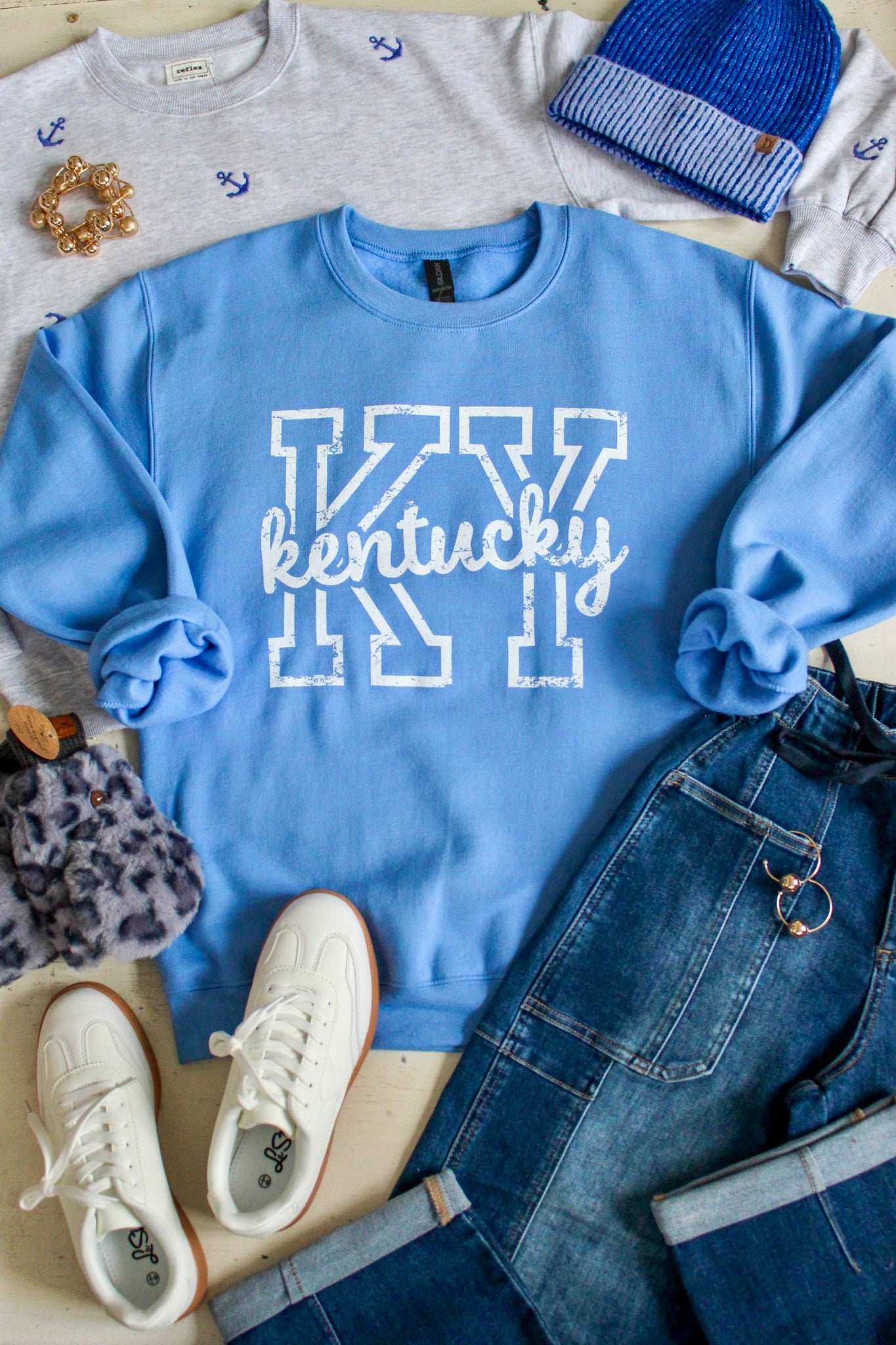 Keep it cute and chill! Our exclusive collection of the cutest graphic sweatshirts will keep you cozy and comfy all season long! This crewneck pullover features a graphic print in soft pre-shrunk fleece, with drop shoulder sleeves and a relaxed fit. With ribbed cuffs, collar and waistband with spandex for stretch and recovery. Toss over leggings or wear with your favorite jeans. Unisex fit, S-2X. Gildan Heavy Blend, 50% Cotton, 50% Polyester. Model is 5’3” and wears Small.