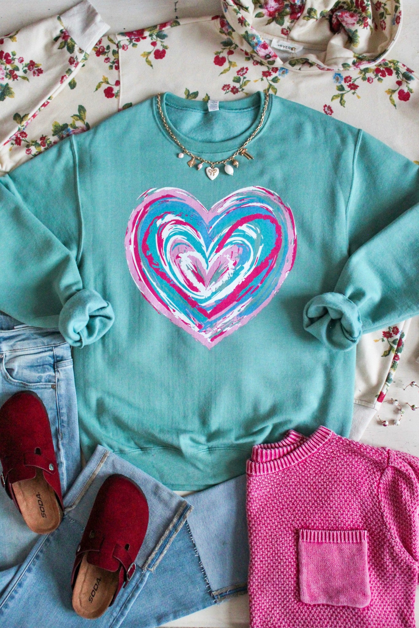 Celebrate the season of love with our exclusive collection of the cutest graphic sweatshirts! This crewneck pullover features a graphic print in soft pre-shrunk fleece, with drop shoulder sleeves and a relaxed fit. With ribbed cuffs, collar and waistband with spandex for stretch and recovery. Toss over leggings or wear with your favorite jeans. Unisex fit, S-2X. 50% Cotton, 50% Polyester. Model is 5’6” and wears Small.