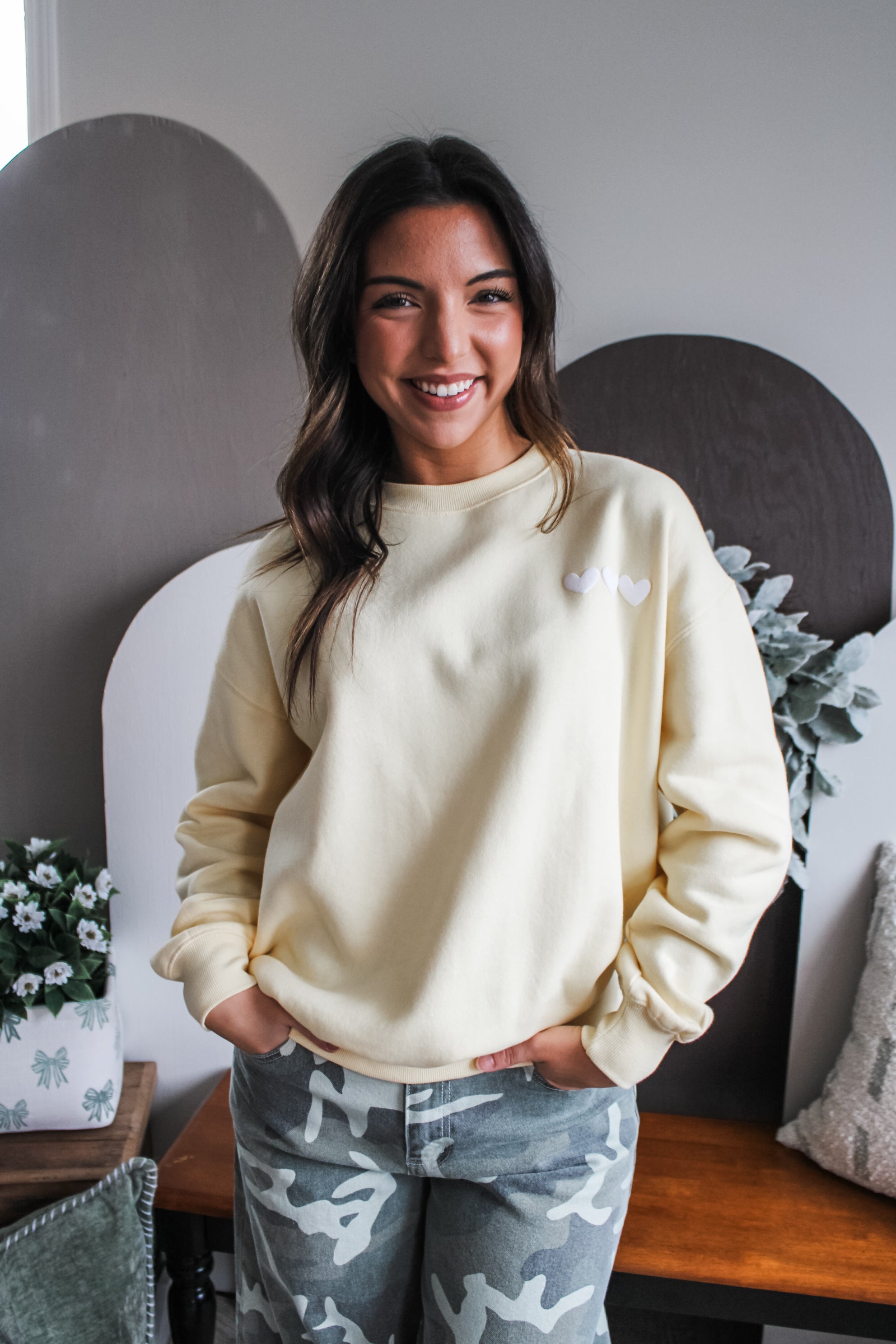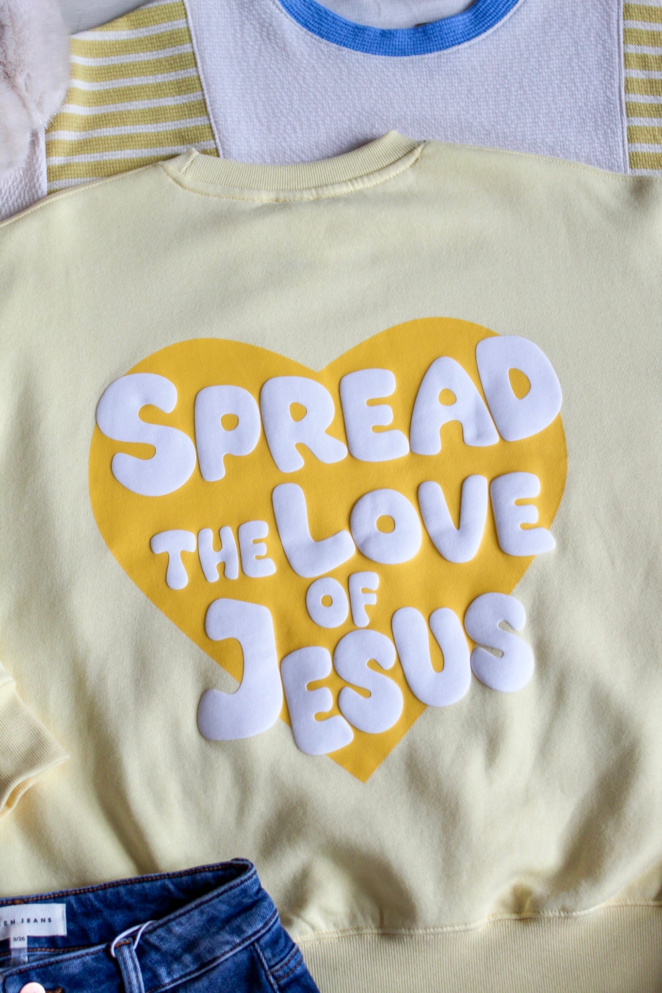 This graphic print pullover will add a dose of faith and fun to your spring style! The fleece knit fabrication provides a layer of warmth without the bulk and the crewneck silhouette gives it an easy and comfy fit. Toss over corduroy pants, barrel leg jeans, joggers, leggings and everything in between.