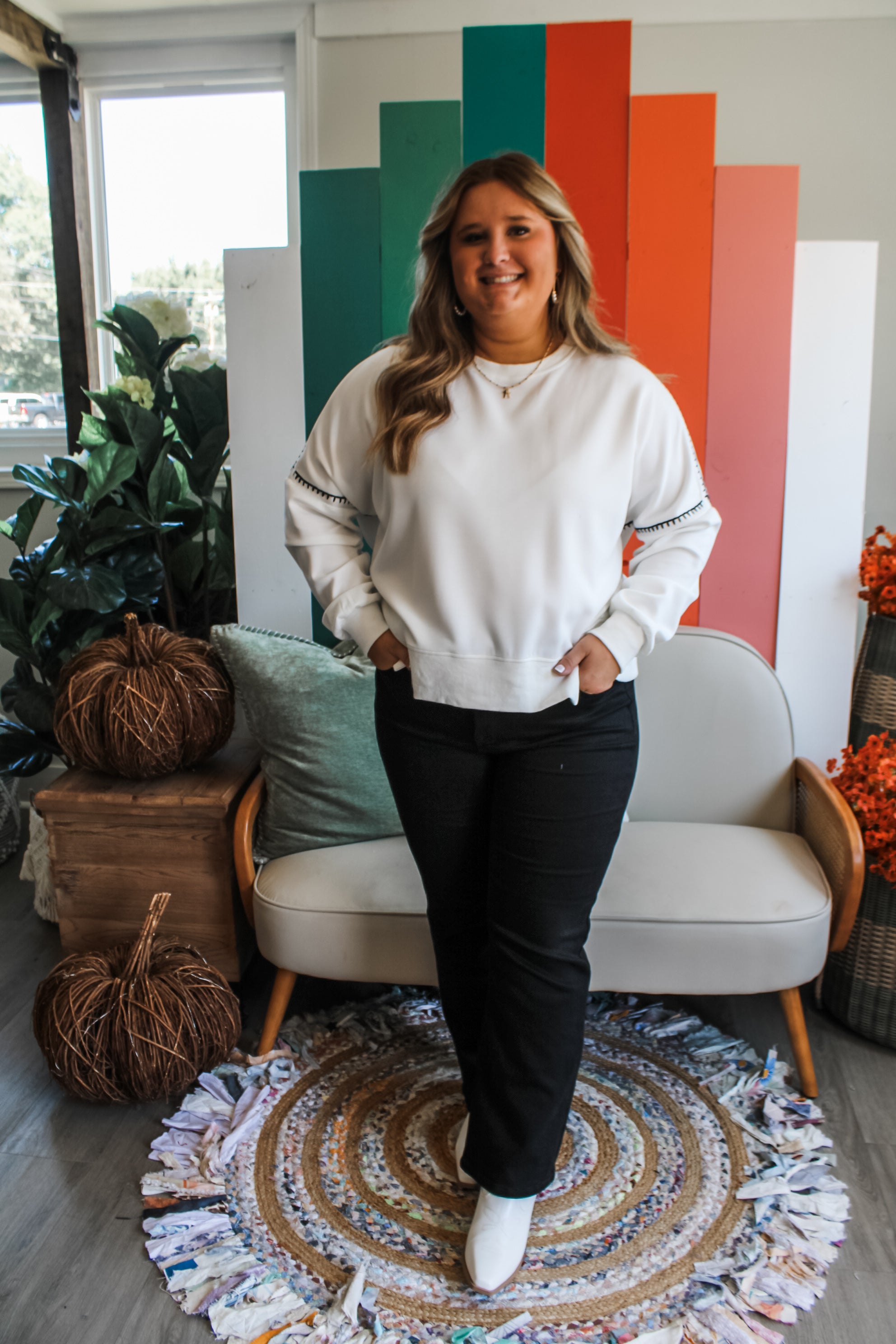 So stylish and essential, this pullover is featured in a modern dolman silhouette for the comfiest fit. The scuba knit fabrication provides a soft and smooth feel, while the stitching details add contrast and texture. Featuring a classic crewneck, rib band finishing and a front slit hem.