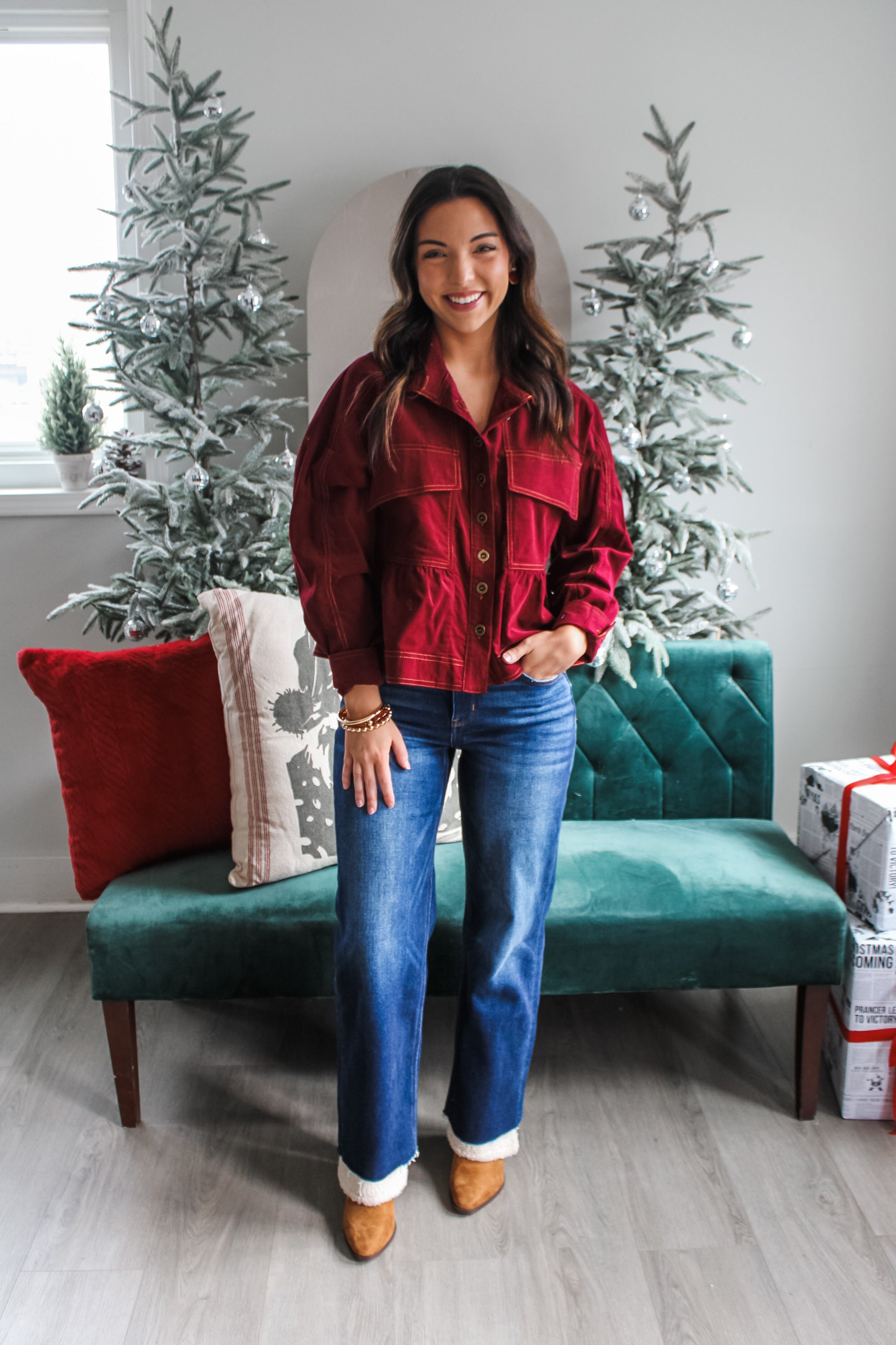 By The Fireside Babydoll Button Up • Wine