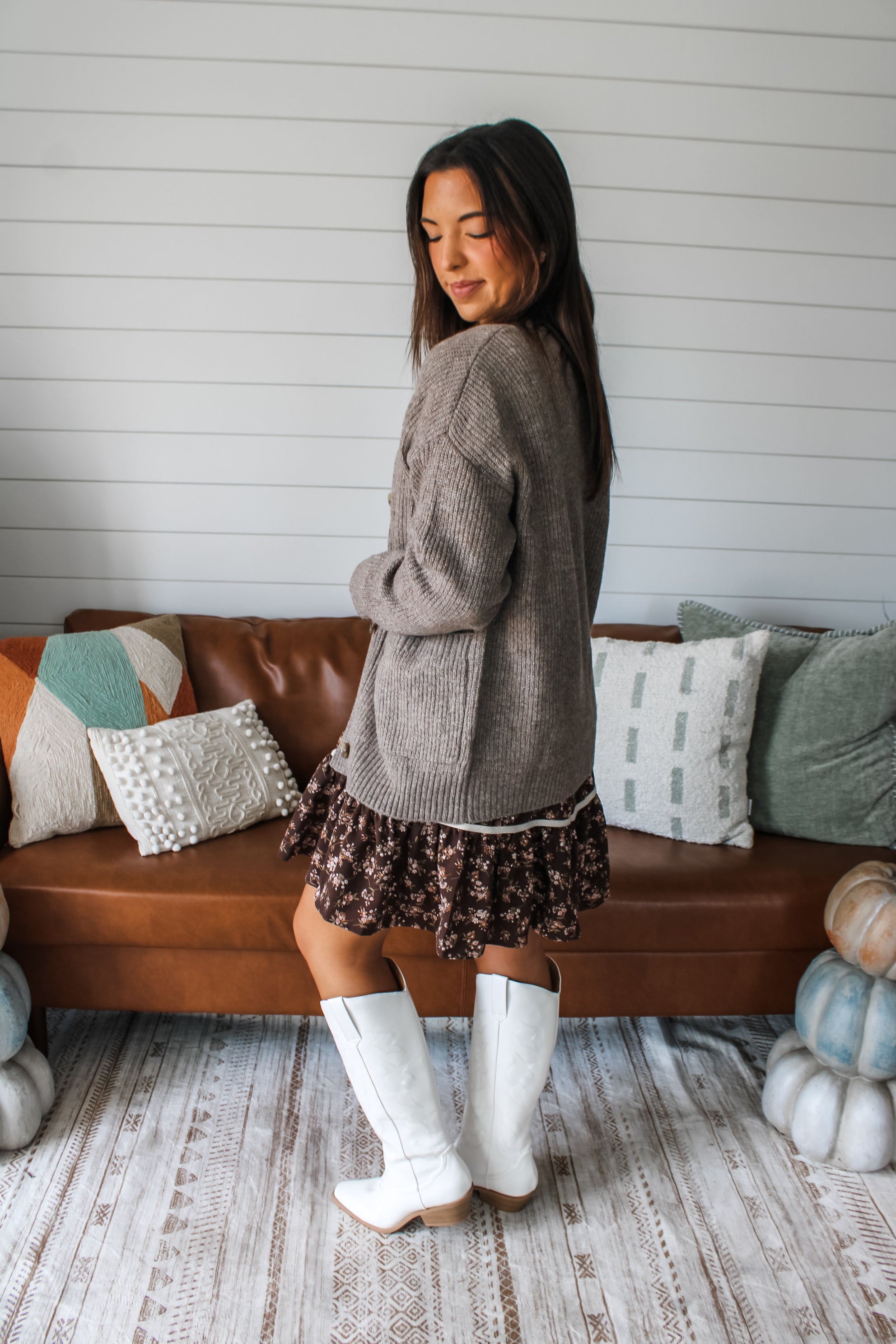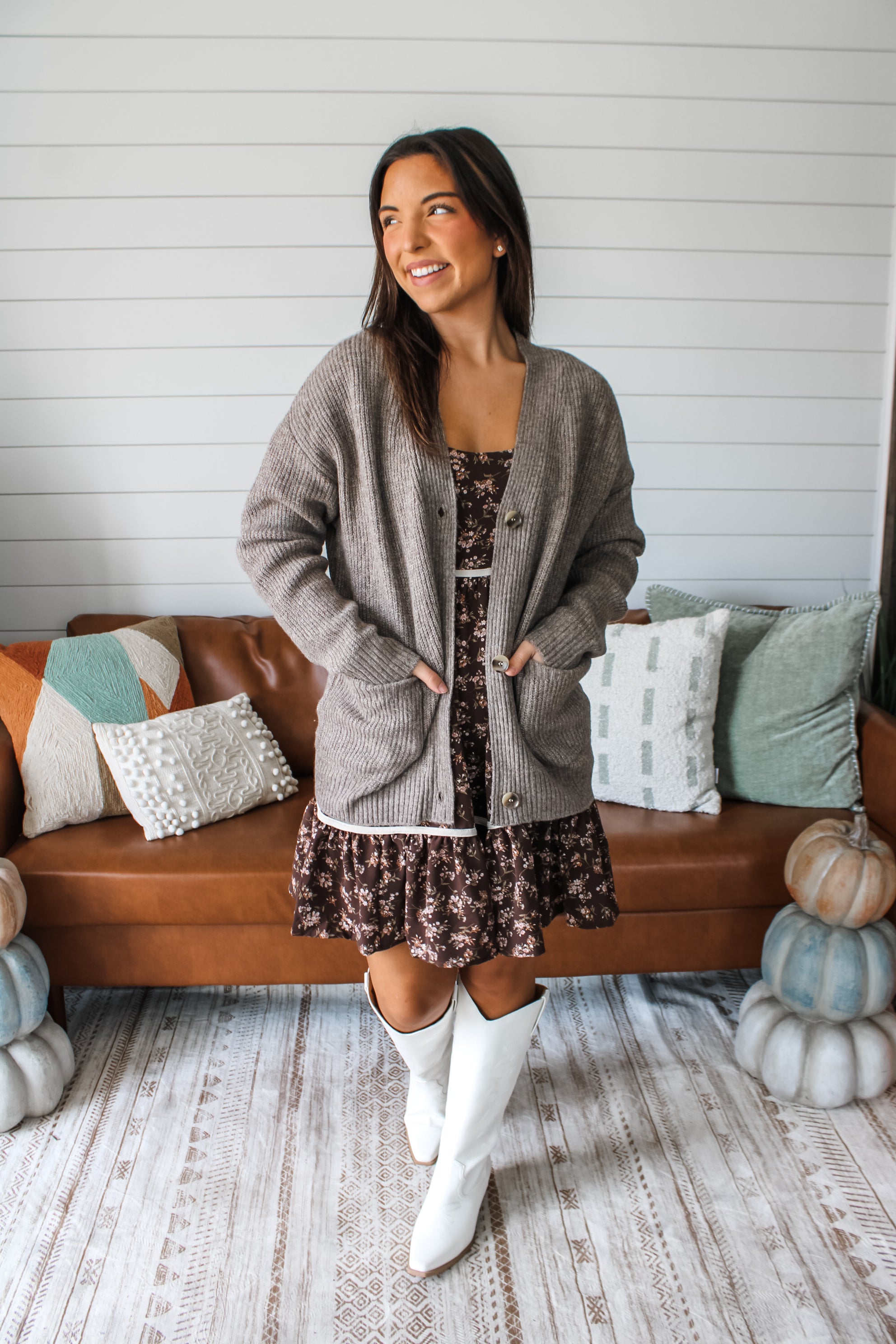 Elevate your wardrobe with cozy textures and effortless classics. Crafted from a heathered rib knit, this sweater is a quintessential look you can dress up or down season after season. Featured in a modern relaxed silhouette with a v neckline, double front pockets and rib contrast finishing.