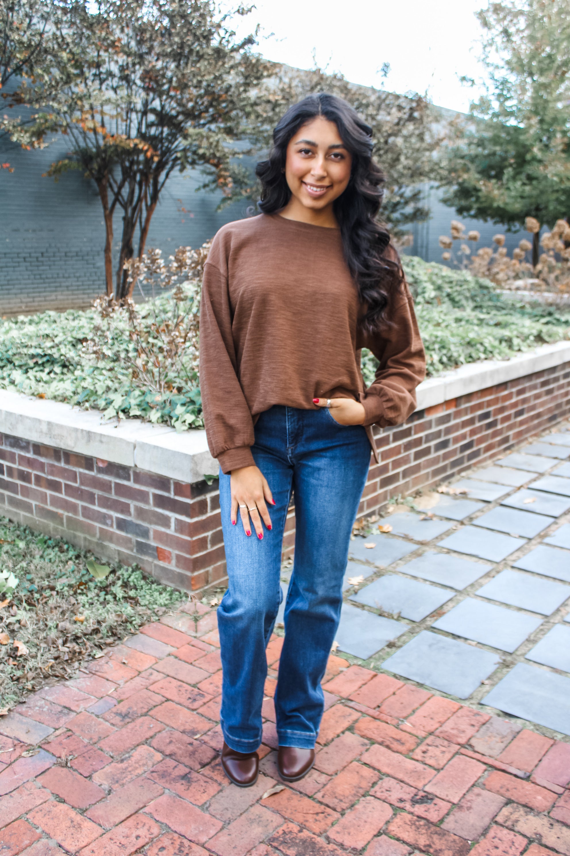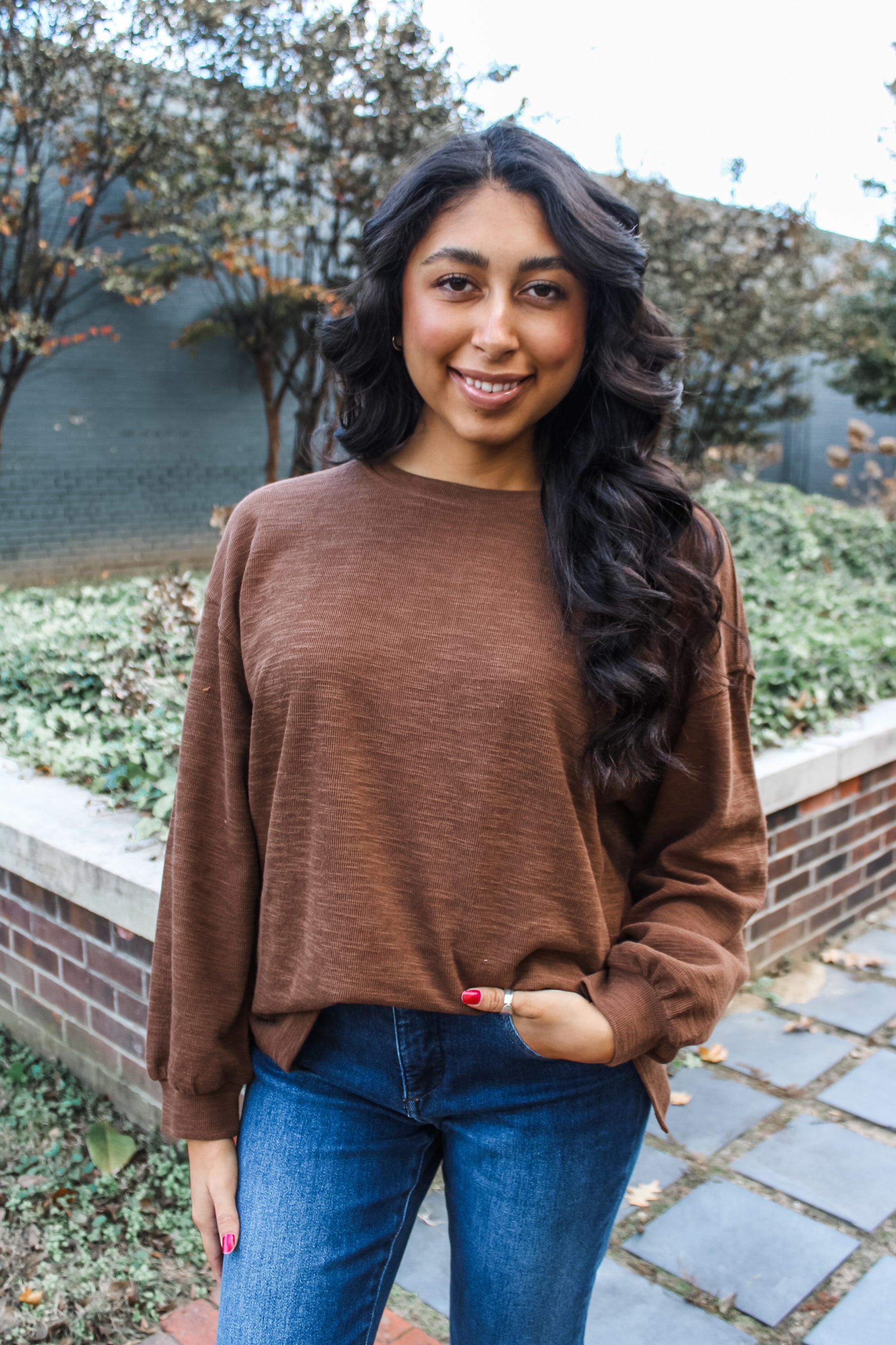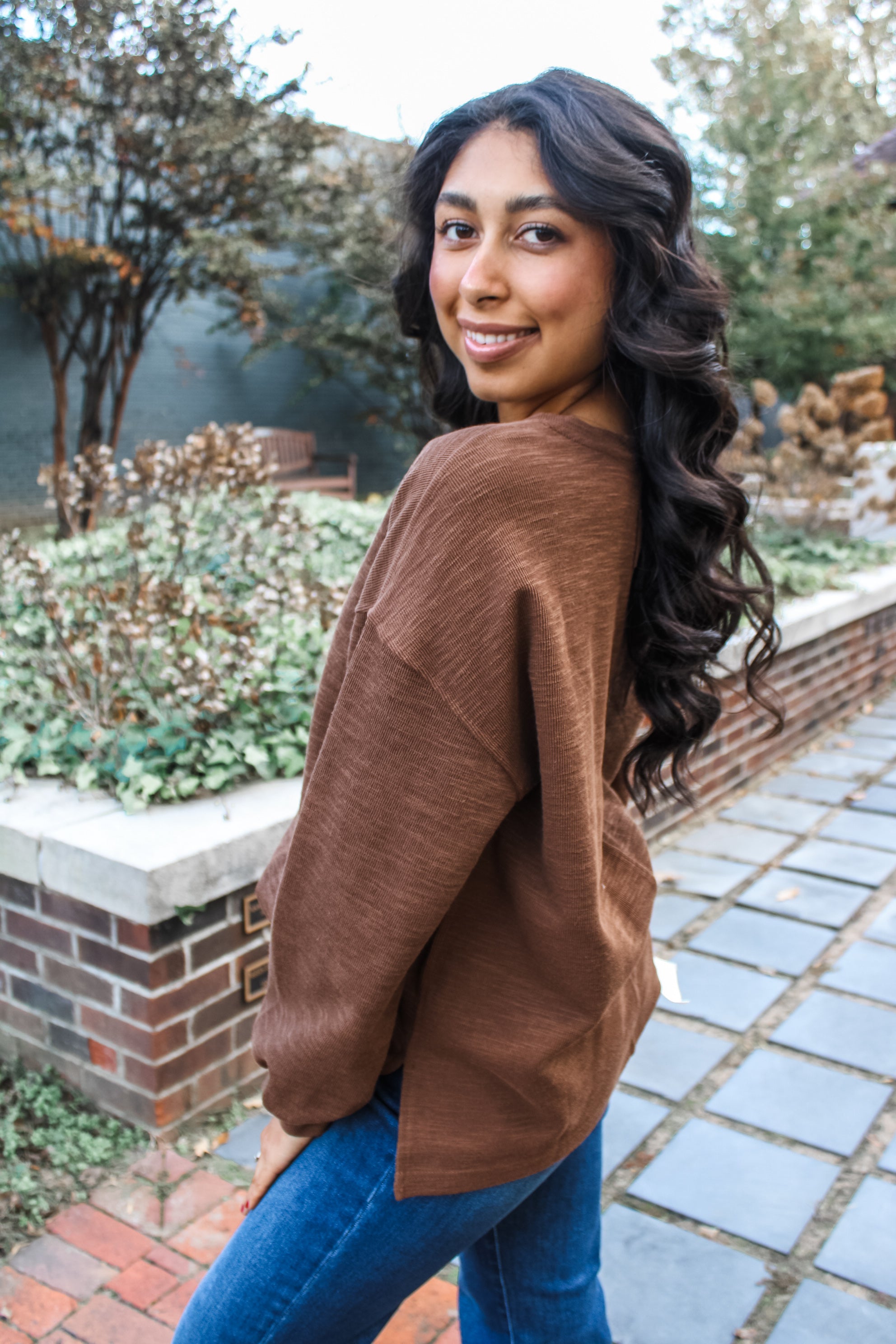 Elevated essentials that will keep you stylish from workdays to weekends. Fabricated in a textured slub knit, this crewneck top is a chic and comfy look you can dress up or down season after season. Featured in a modern loose silhouette with cuffed sleeves and side split hem.