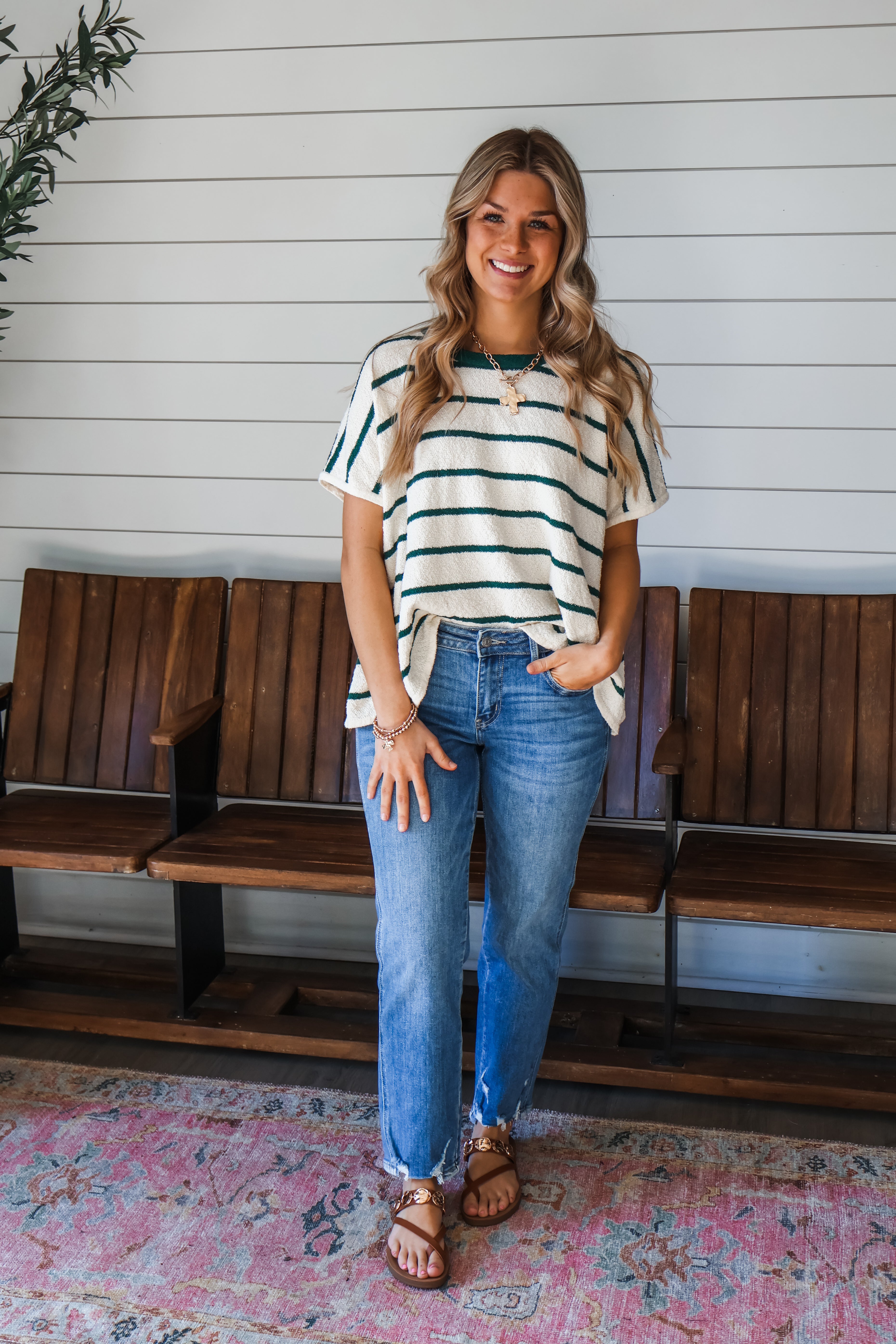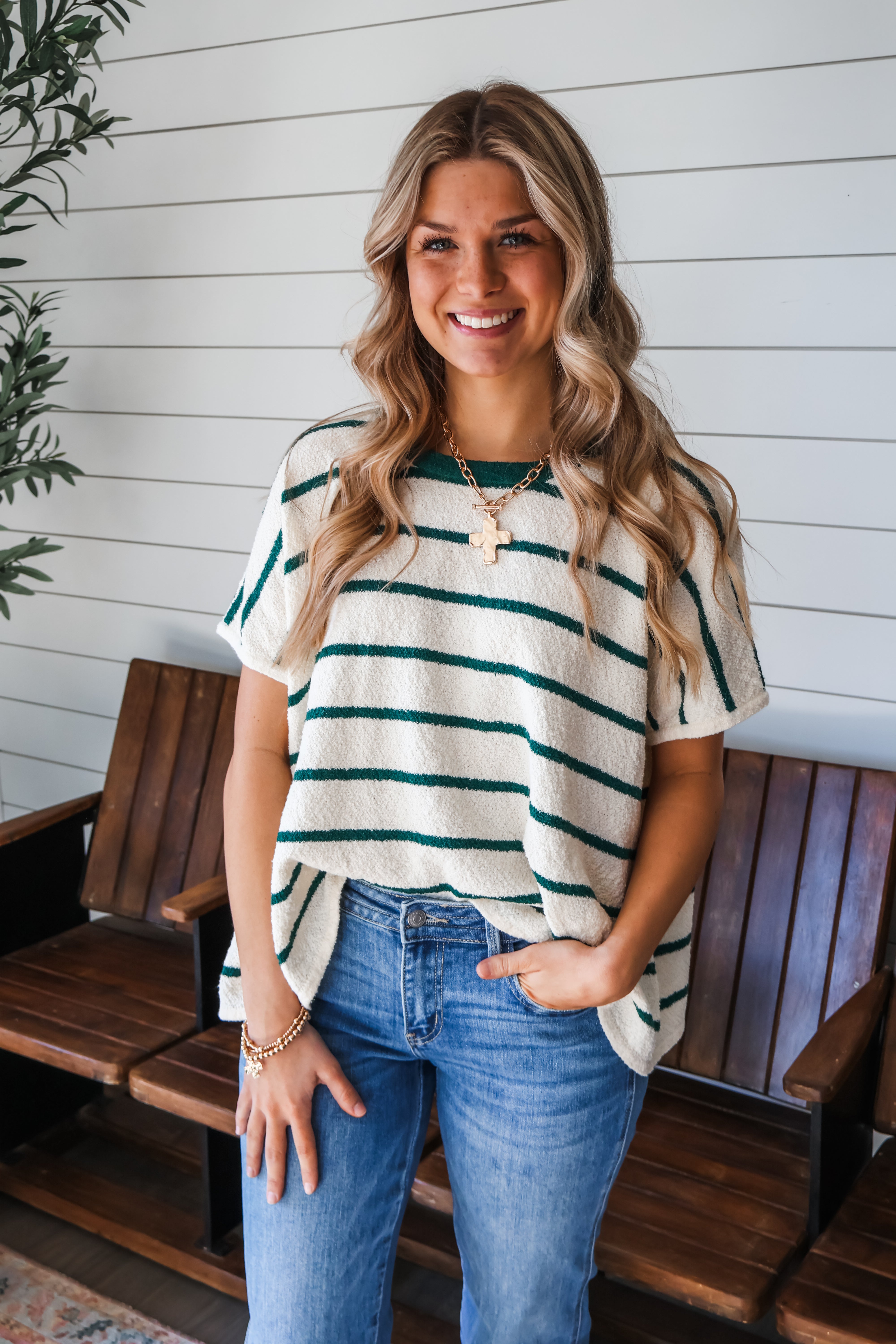 Elevate your spring with cute and classic stripes! Crafted from a beautifully textured knit, this top is a polished and playful style you can dress up or down for any season. Featured in a breezy silhouette with a ringer contrast and crew neckline.