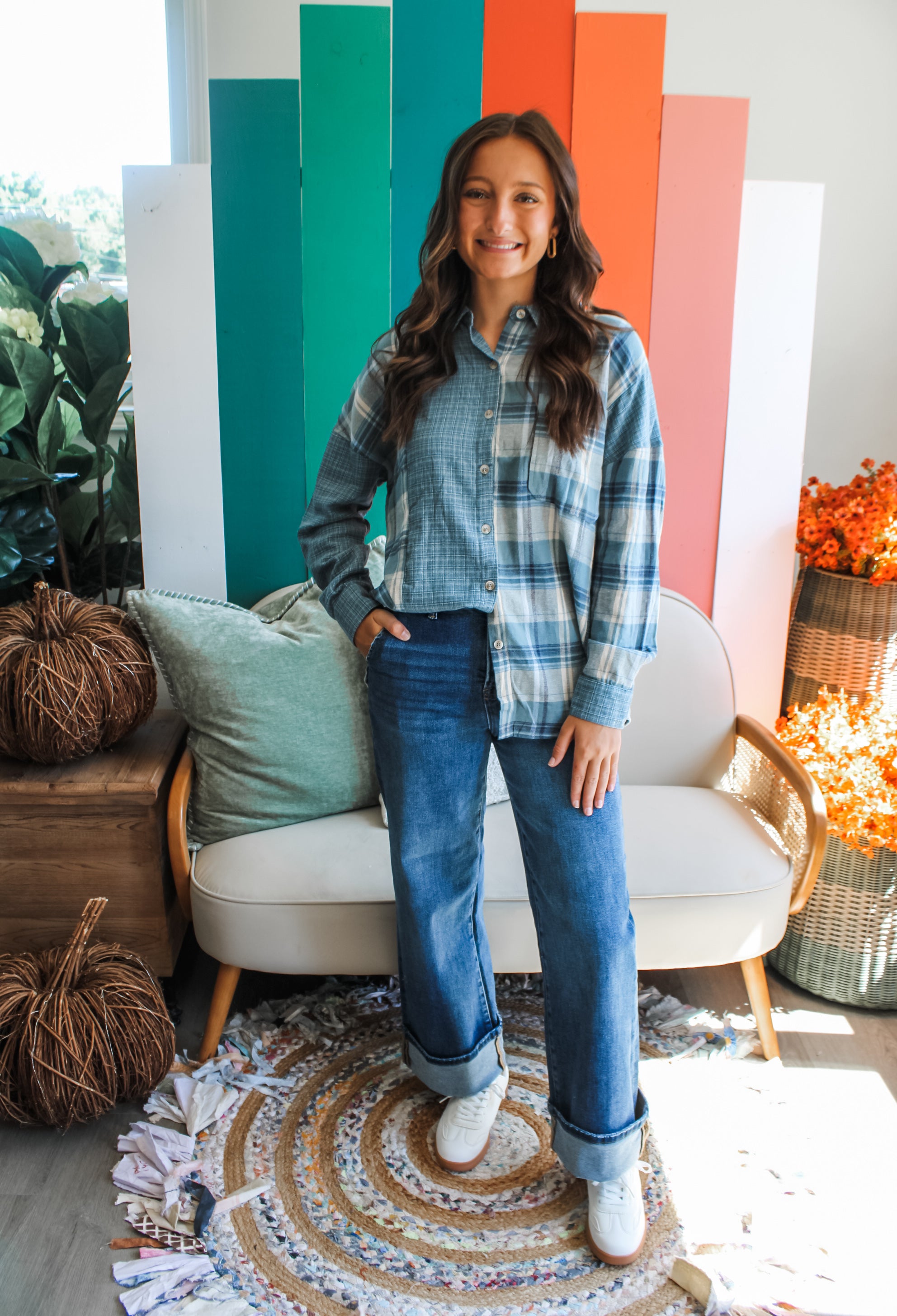 Step into fall with chic flannels and stylish plaids. Fabricated in a soft brushed woven, this button up features a collared neckline, chest pocket detail and a side split hem. The modern loose silhouette is perfect for tucking into jeans and layering over graphic tees.
