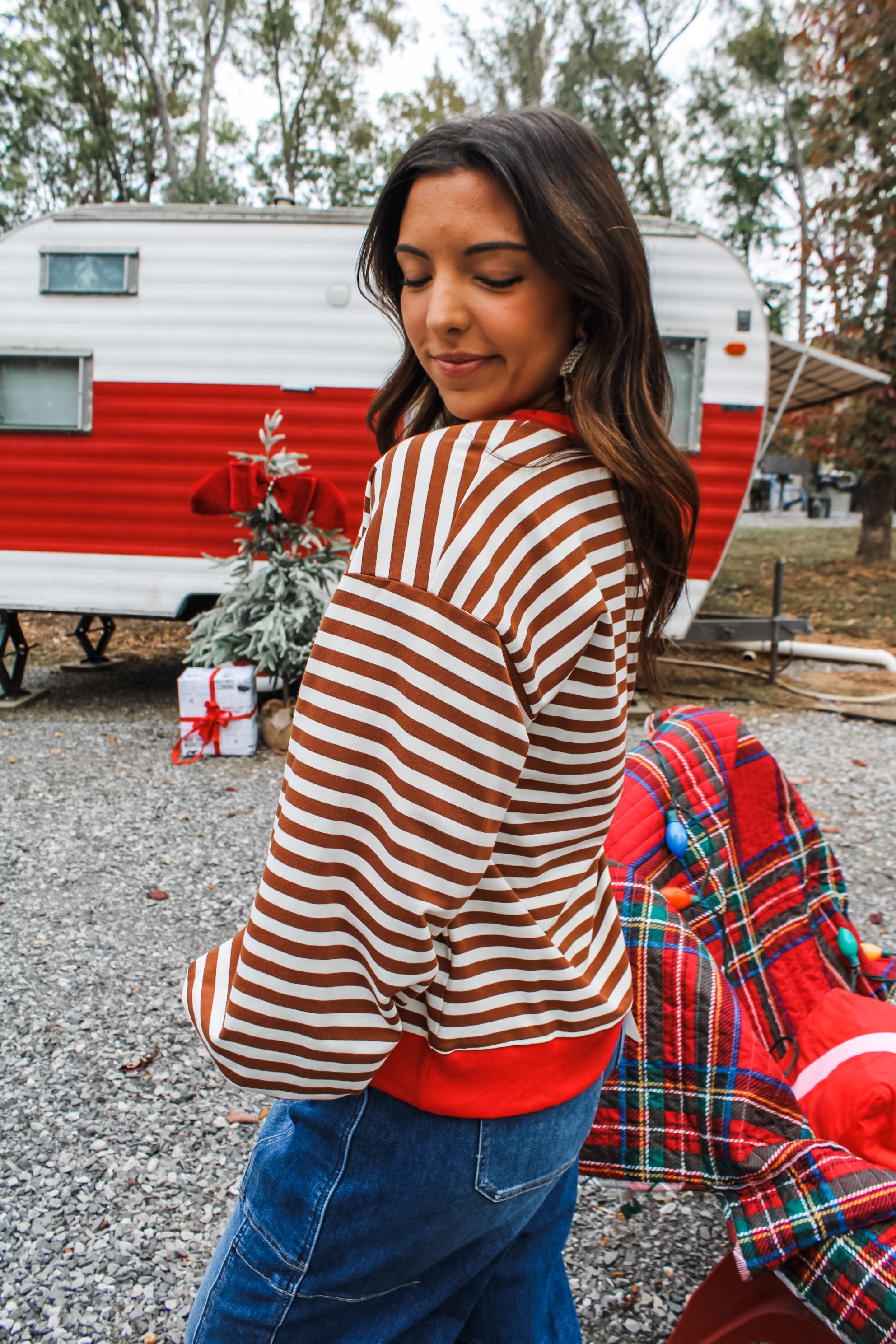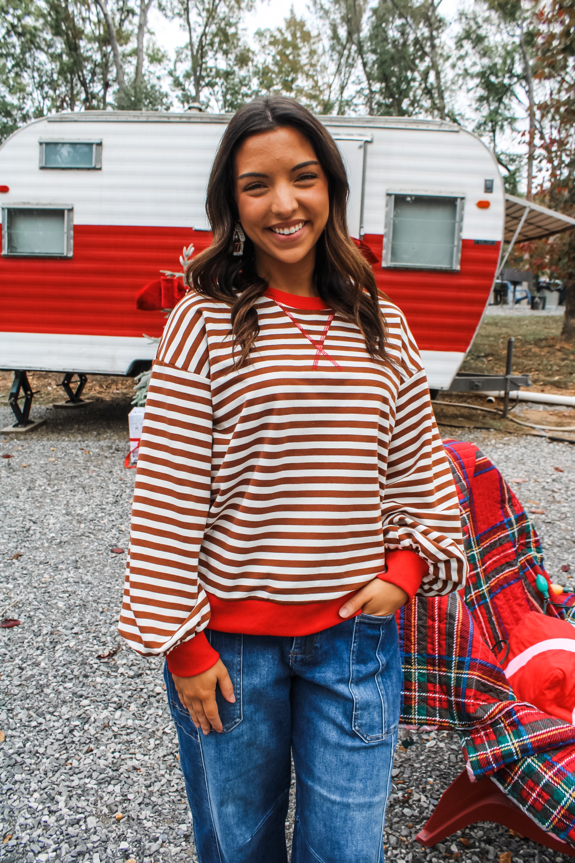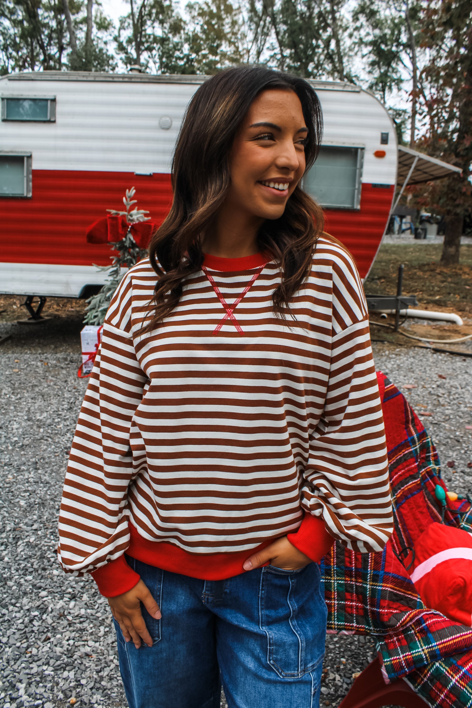 Meet the Fun & Festive Stripes Pullover — a classic crewneck staple featured in fresh colorways for the perfect bold-yet-go-to option. This cool essential is fabricated in a soft stretch knit with an easy oversized fit for endless styling season after season. With a v-notch detail, ringer contrast design, drop shoulder sleeves, a high low hem and rib band hem.