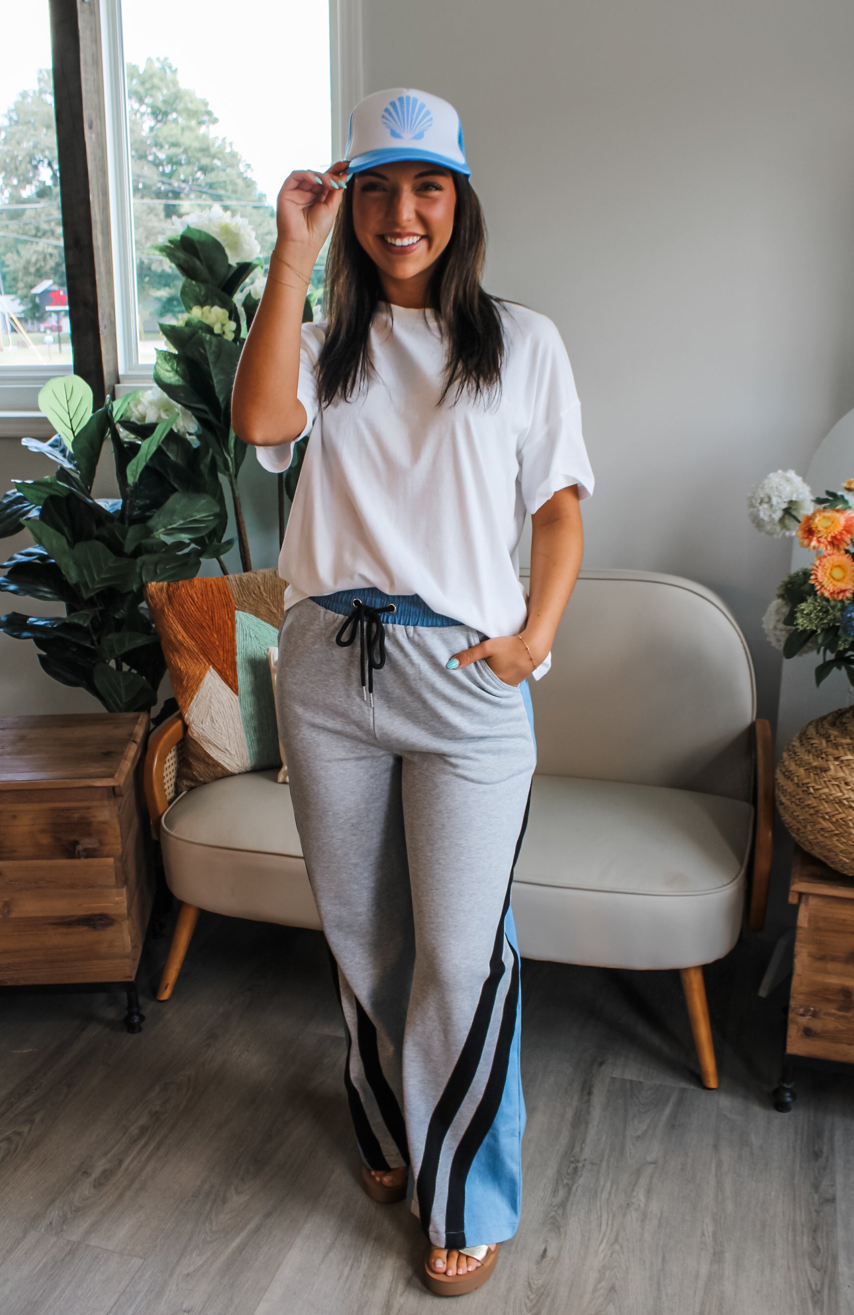 Size + fit: Loose fit for style. S 0-6, M 6-10, L 10-12. 100% Cotton; 57% Cotton, 38% Polyester, 5% Spandex (Contrast). Model is 5’5” and wears a Small.