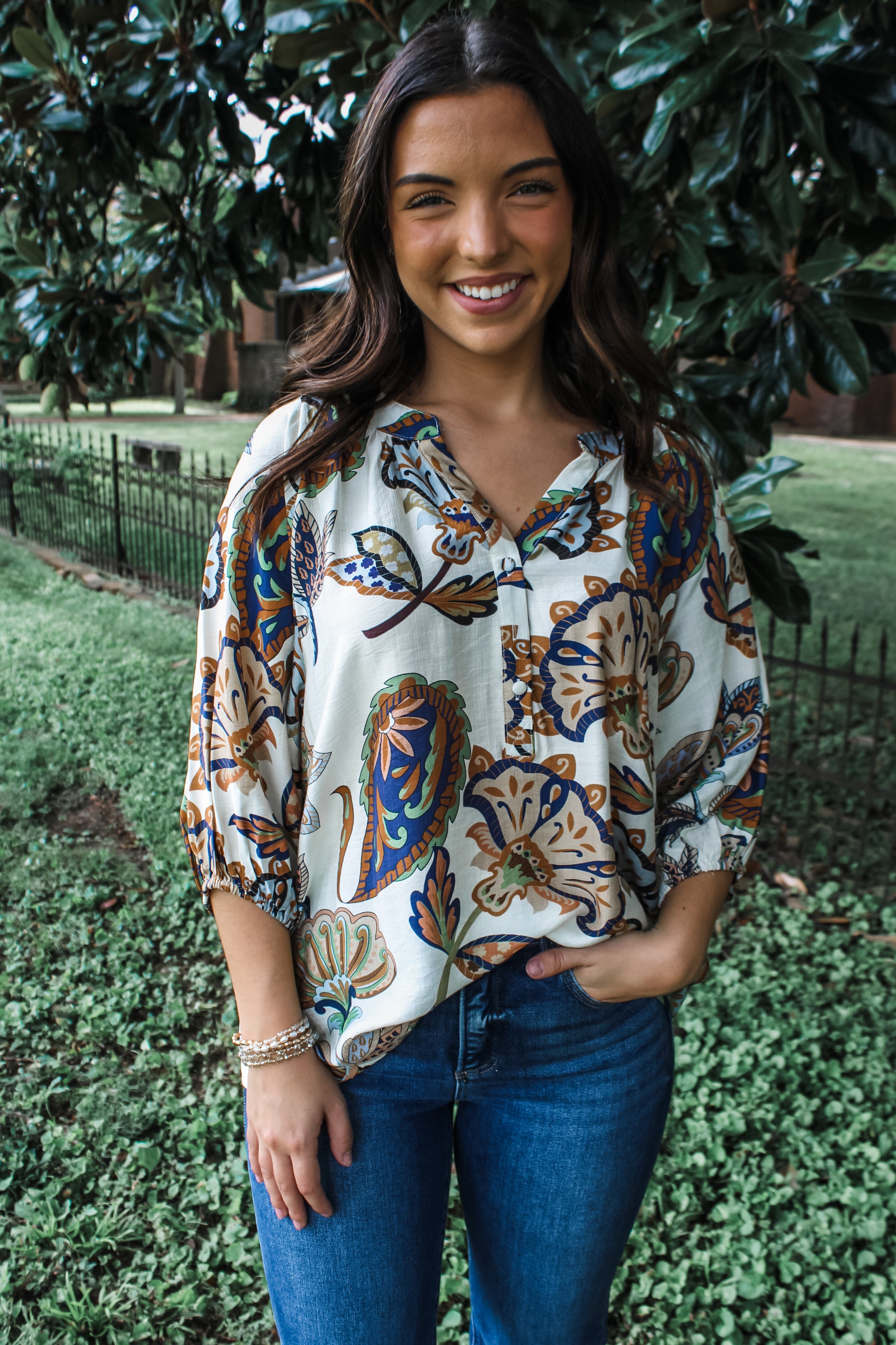 A beautiful new fall floral top. Woven fabric. Runs tts. Model is wearing the small and is 5”5. Small 0-4 medium 6-8 large 10-12