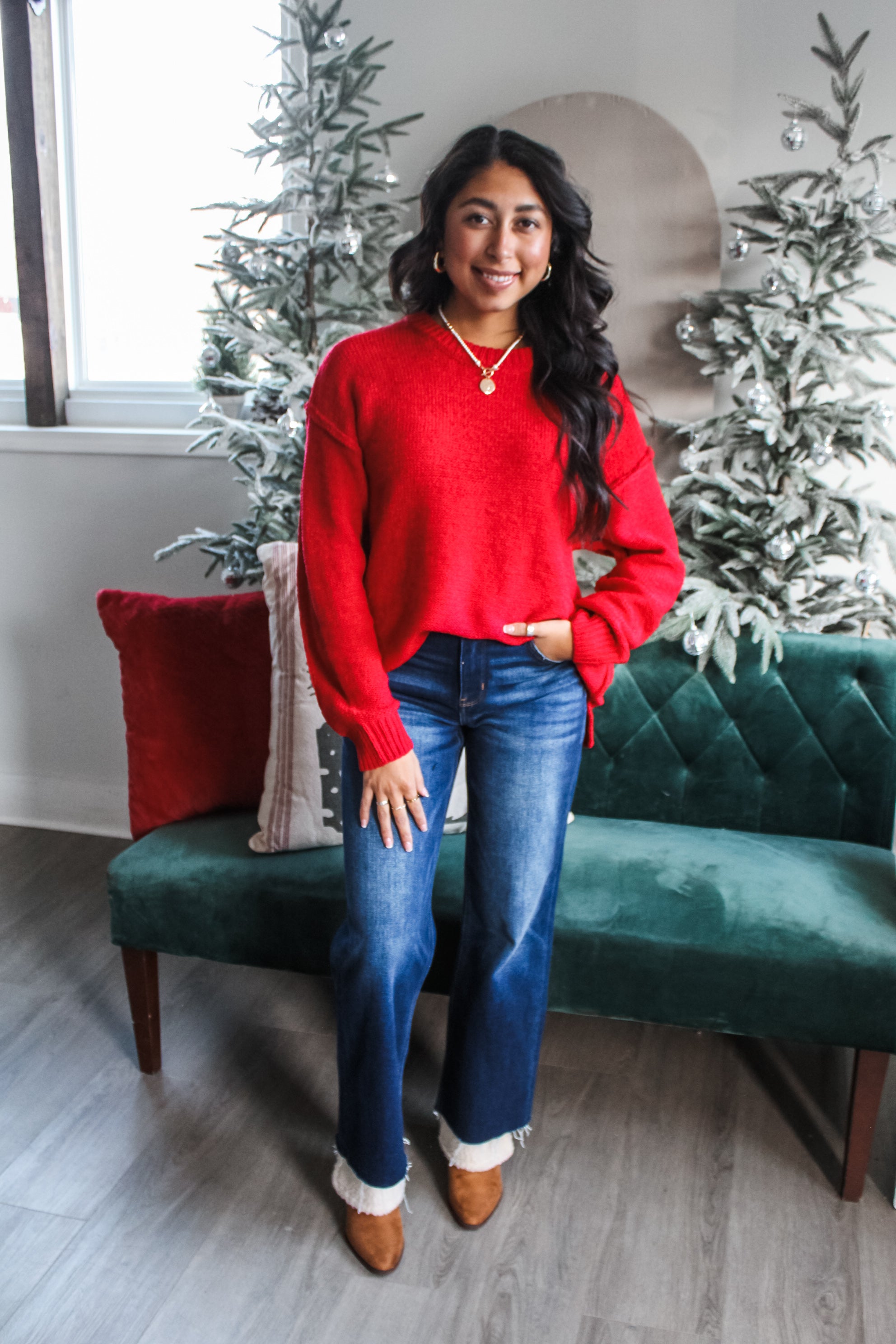Dress to impress for the holidays and beyond! This cute and classic sweater is a staple you’ll keep reaching for season after season! Fabricated in a textured knit that drapes beautifully over the body, with a crewneck, exposed seaming detail and contrast rib finishing.