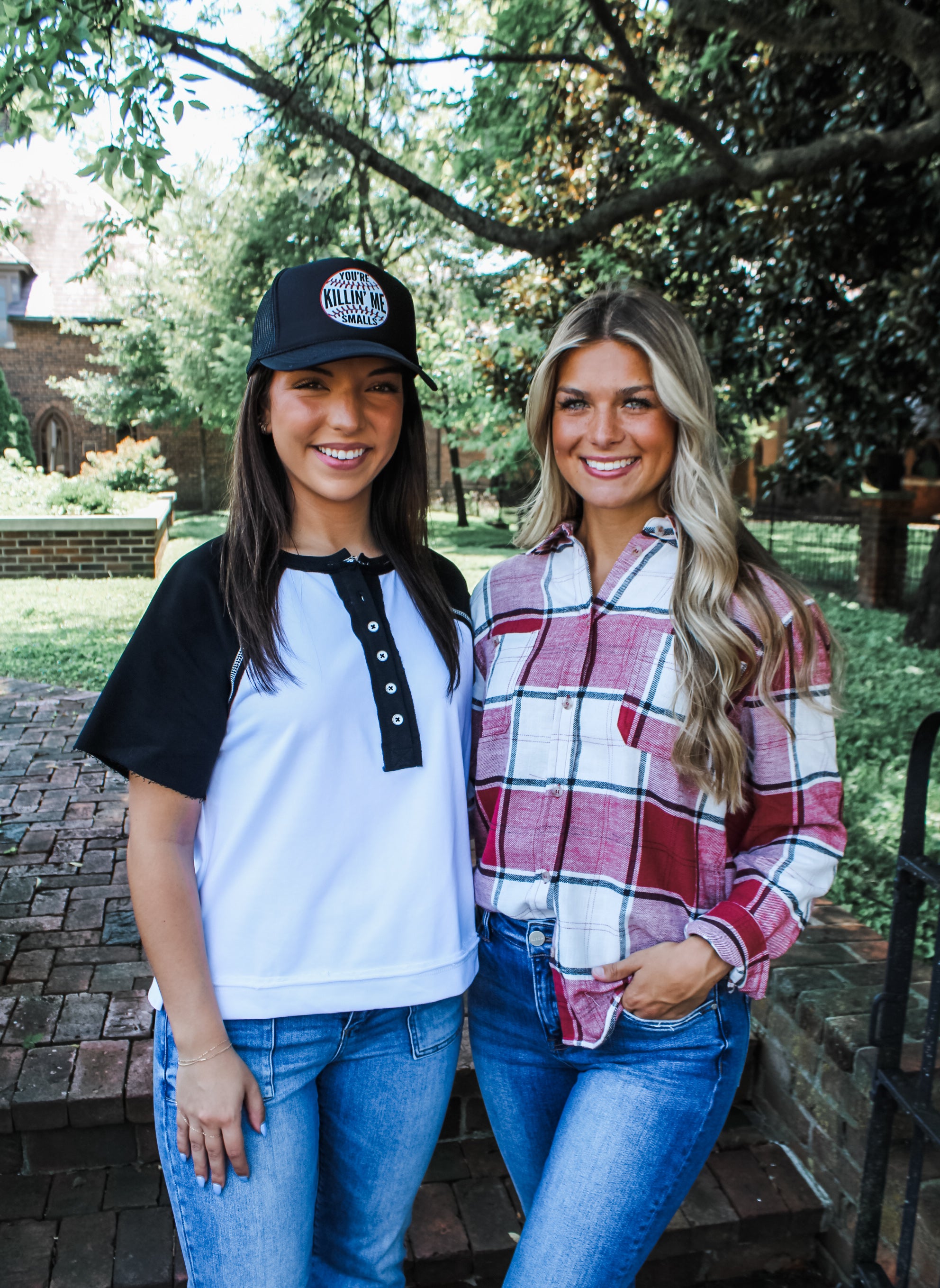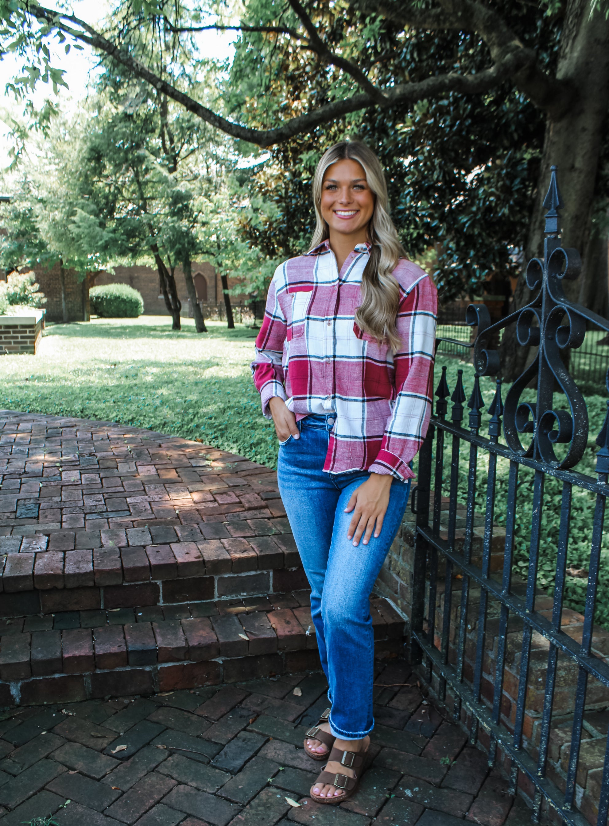 Fall is right around the corner. Your favorite plaid top is here! Great to layer with a graphic or wear by itself. Runs tts. Model is wearing the small and is 5”5. Small 0-4 medium 6-8 large 10-12.
