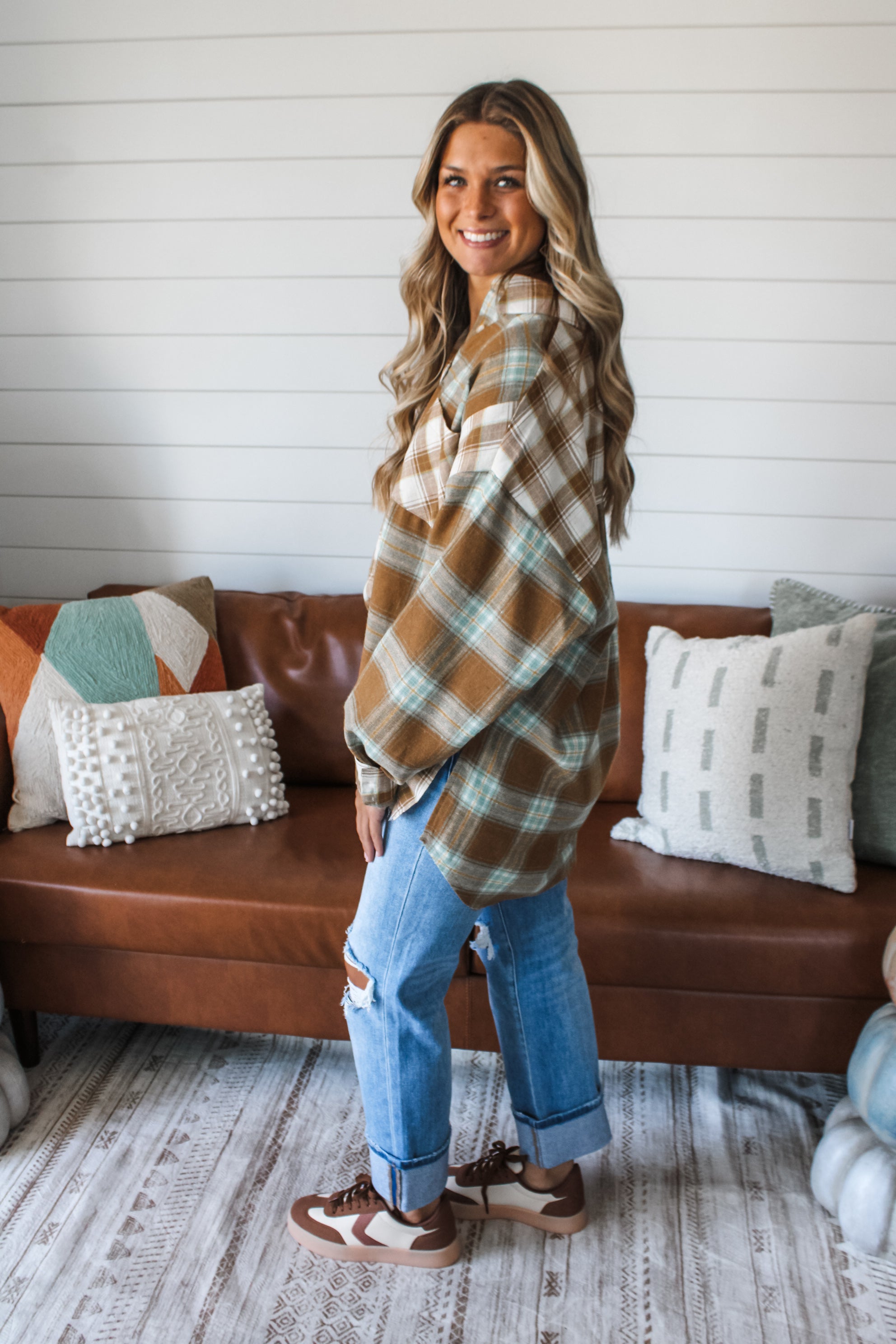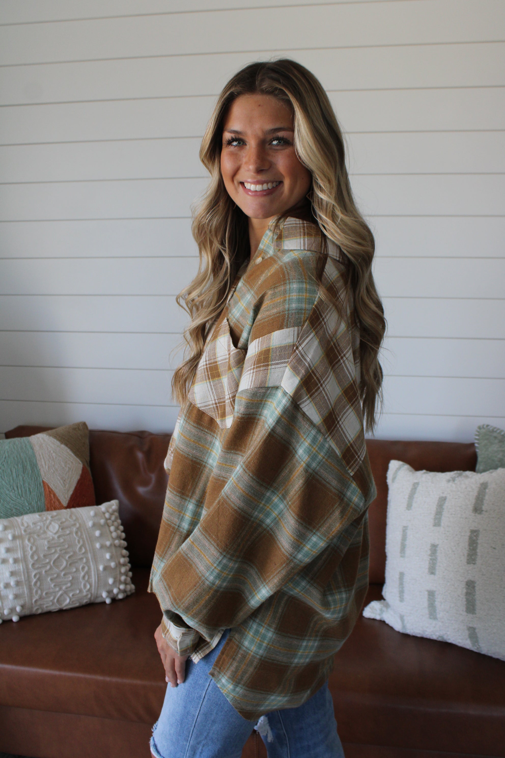 Classic plaid reimagined. This flannel shirt is such a sophisticated refresh on the quintessential style with its contrast print design and oversized silhouette. Fabricated in a soft brushed woven, it features a collared neckline, chest pocket detail, billowy sleeves and a stepped high low hem. The trendy fit gives off that cool relaxed feel and makes layering so easy. Wear on its own, or toss over basic knits, chunky sweaters and graphic tees.