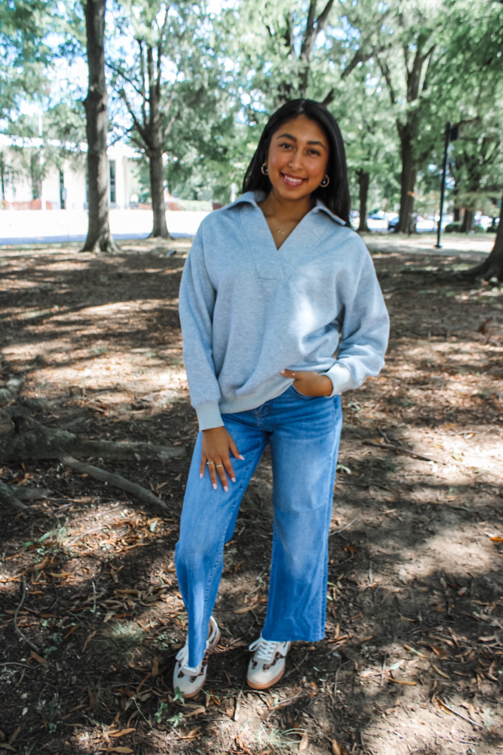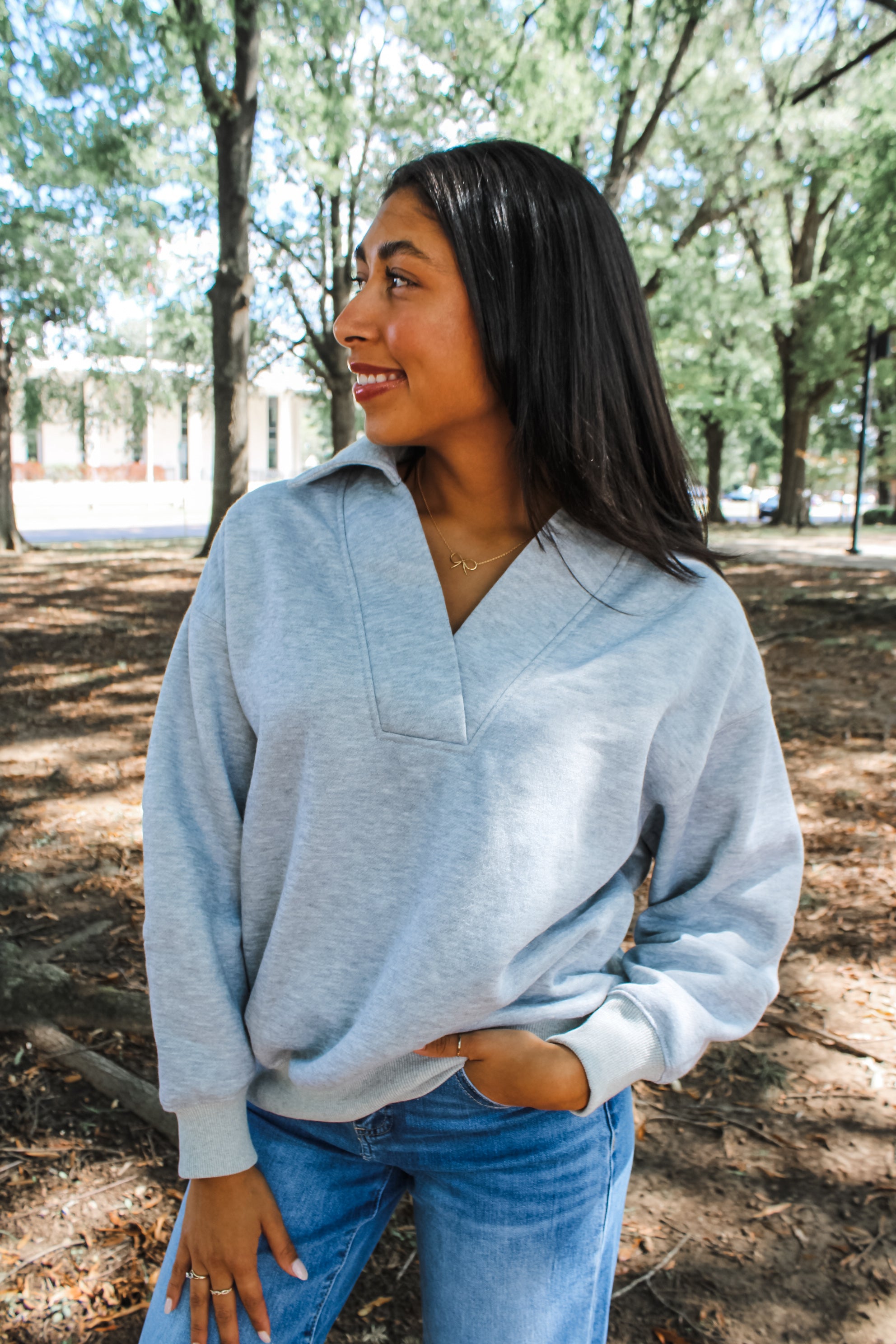 Relaxed style elevated, this pullover effortlessly combines comfort and a preppy-chic feel. The heathered fleece fabrication provides a layer of warmth, and the relaxed silhouette give it an easy, modern fit. Featuring a collared neckline, drop shoulder sleeves and rib contrast finishing for stretch and recovery.