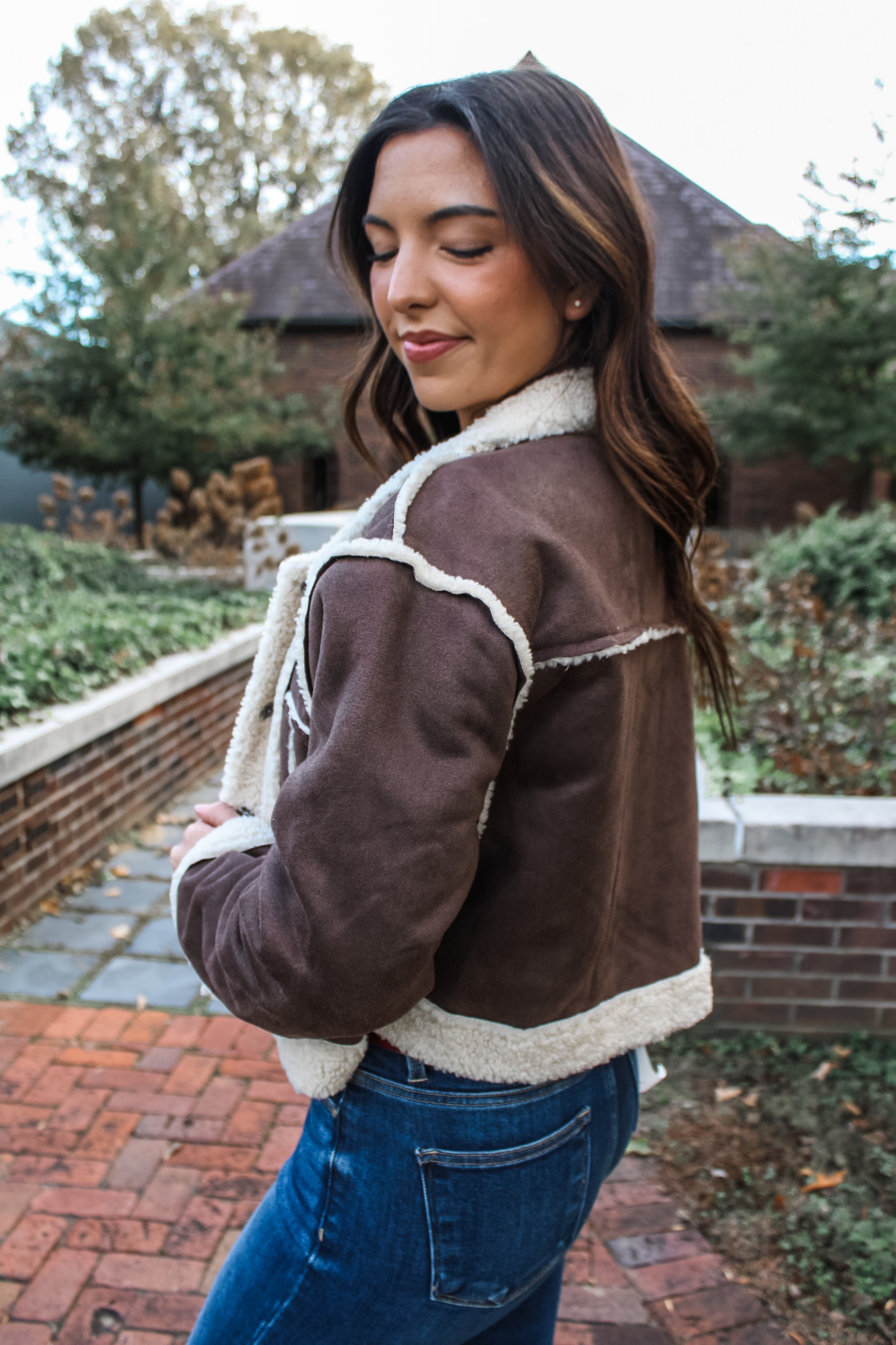 ‘Tis the season to get cozy! This plush sherpa jacket will add a chic and toasty touch to all your holiday looks! The soft sherpa side provides a cozy textured look, while the faux suede side makes it a classic staple. With double chest pockets for added style and functionality. Featuring a collared neckline, snap button front and an exposed seaming design. The relaxed fit makes it easy for layering whether you toss it over plaid wovens, chunky pullovers or graphic knits.