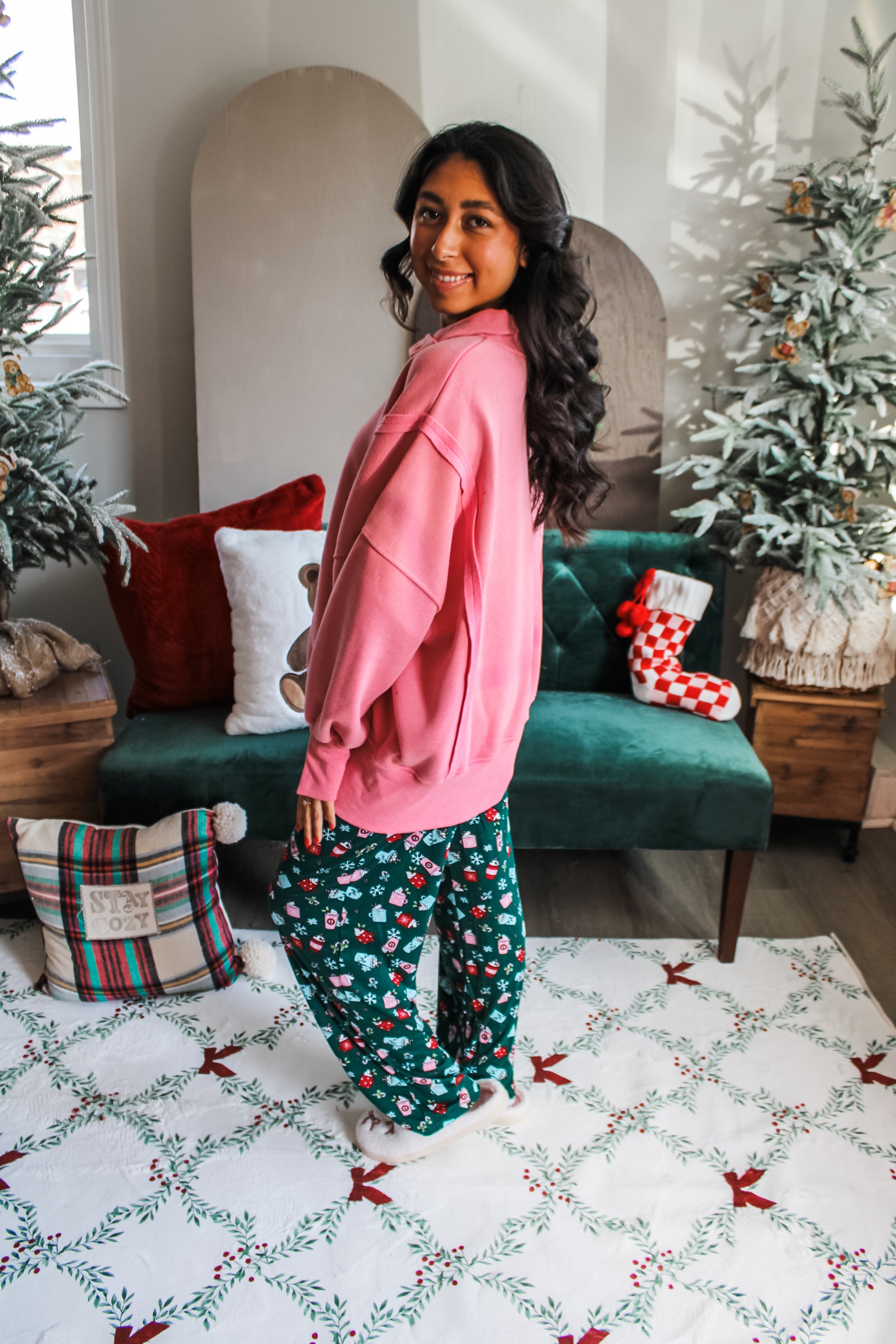 ‘Tis the season to get cozy! This cool and oversized pullover will keep you warm and toasty in style! Fabricated in a soft fleece lined knit with a standing collar, snap button neckline, exposed seaming and front split hem. The loose dolman silhouette provides a comfy fit for a look you can easily toss over corduroy pants, lined leggings or distressed jeans.