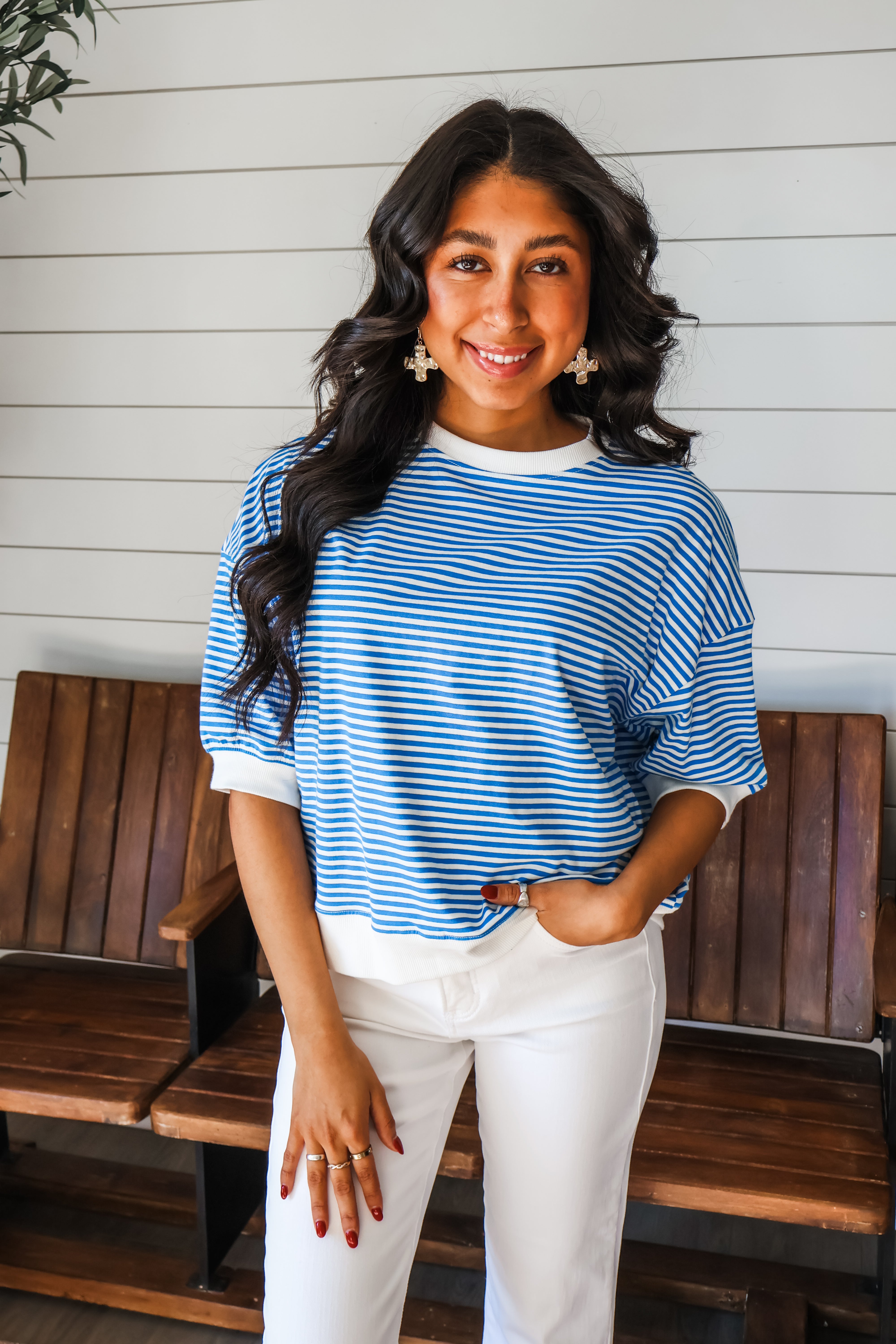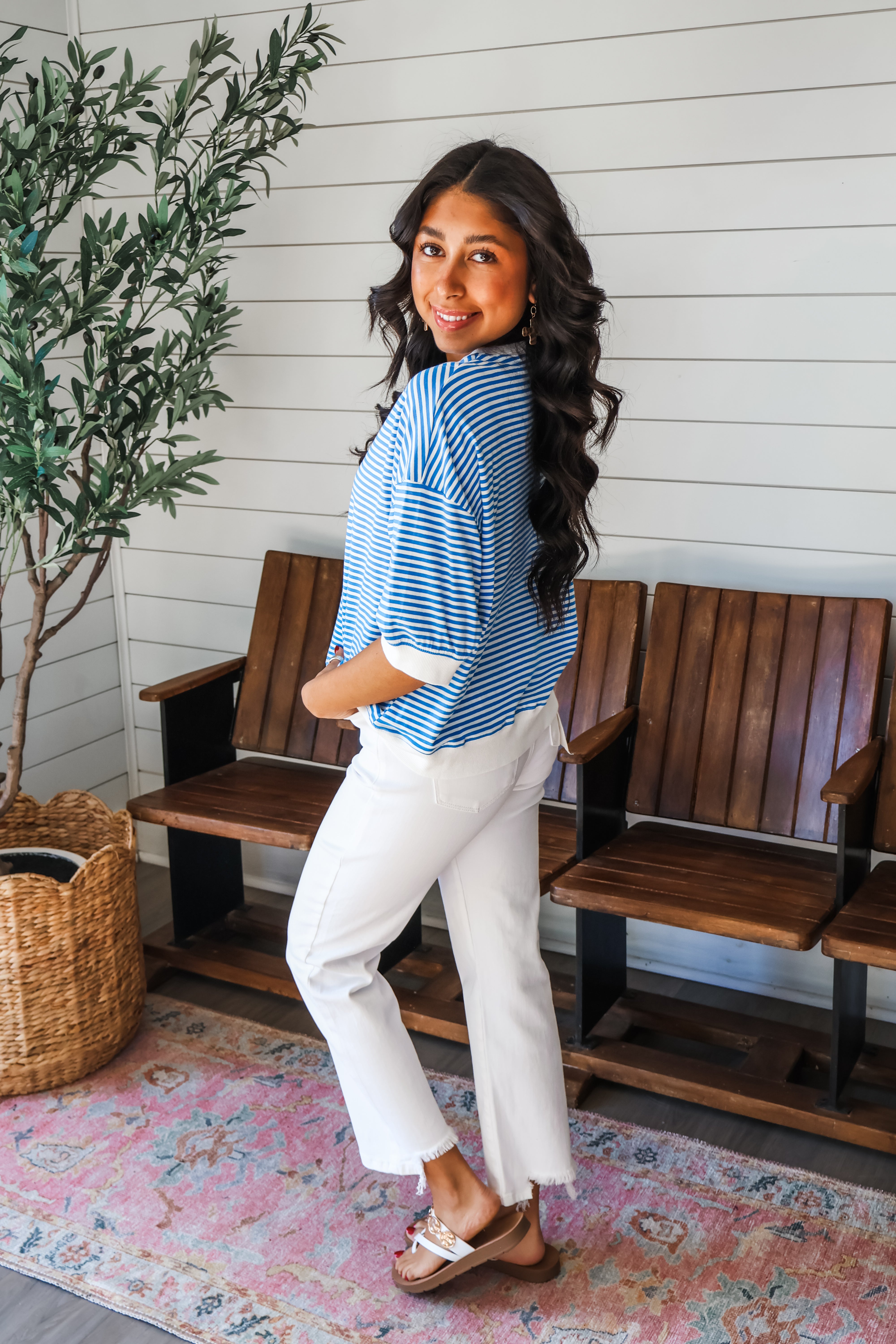 Refresh your style with a pop of stripes! This playful top features a ringer contrast design and a coral pink hue that’s perfect for spring! Fabricated in a soft cotton knit with a classic crewneck, drop shoulder sleeves and a loose silhouette that hangs over the body for an easy and comfy fit.