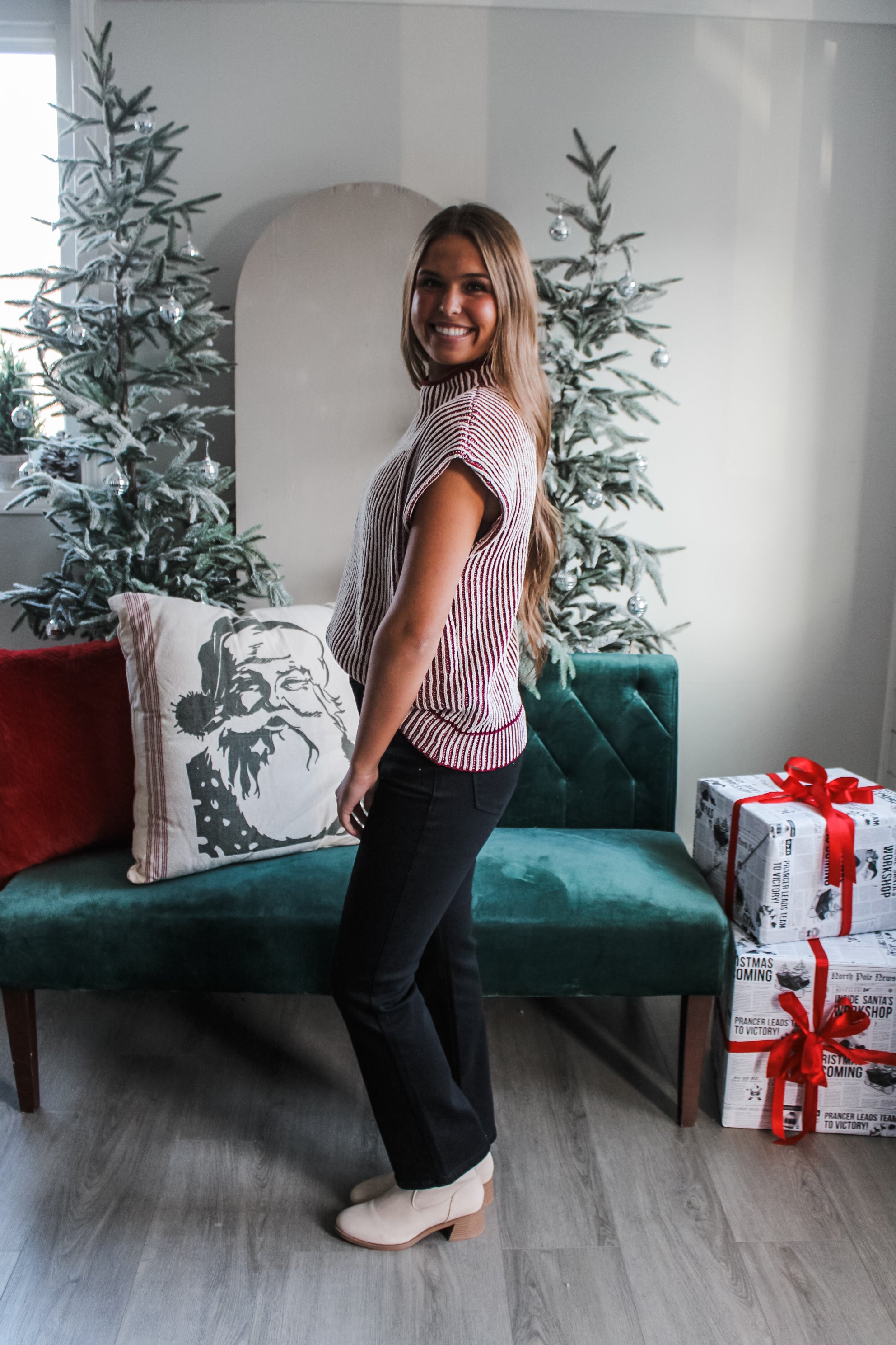 Cozy classics for a stylish winter wardrobe! Crafted from a corded chenille knit fabrication for a two-tone look with soft and plush feel. Featuring a mock neckline with a rolled edge, cap sleeves and a relaxed silhouette.
