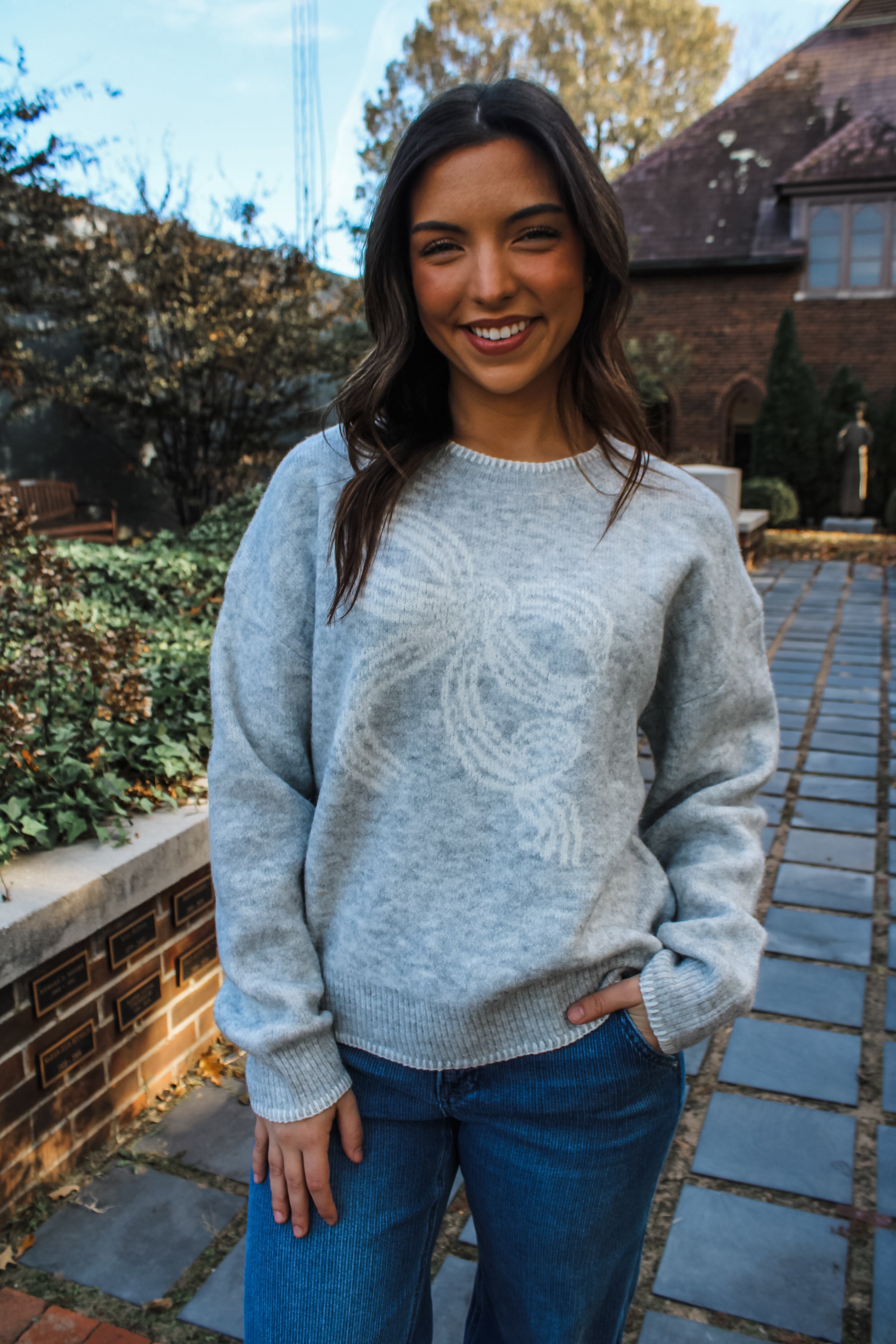 This sweet and cozy sweater features a subtlebow design and contrast stitching trim for a playful yet polished look. Fabricated in a plush Heather knit with a crew neckline, drop shoulder sleeves and a relaxed silhouette.