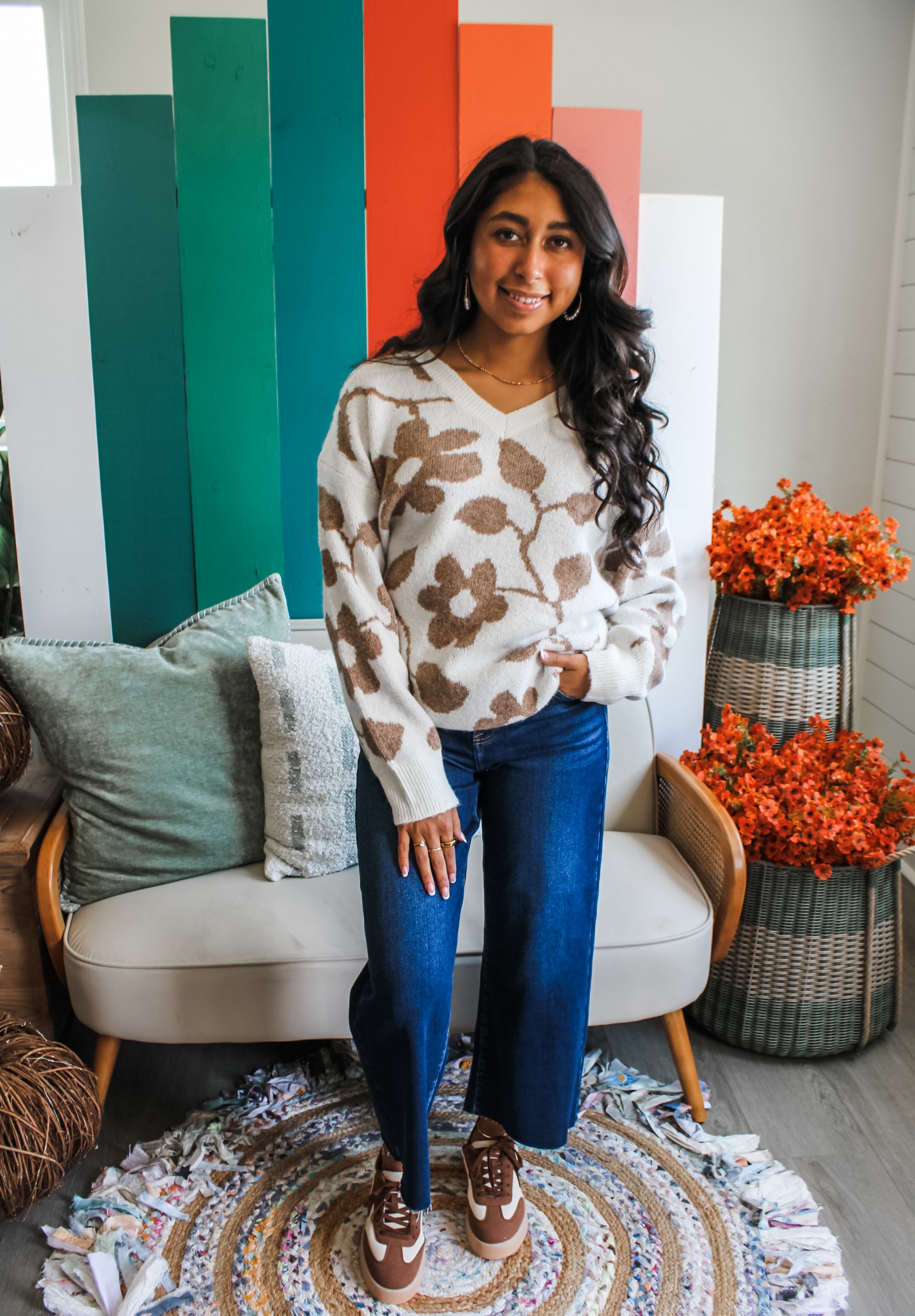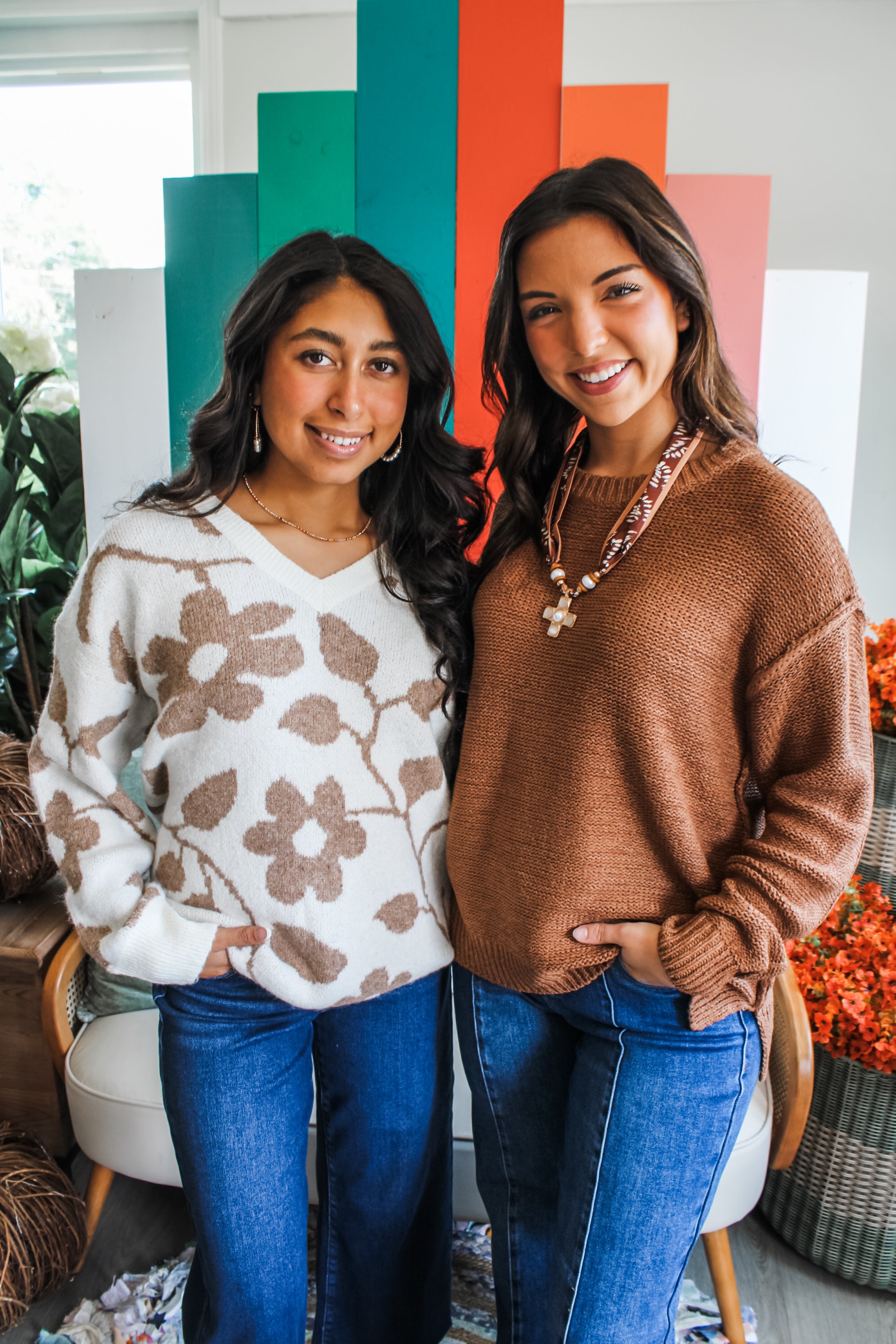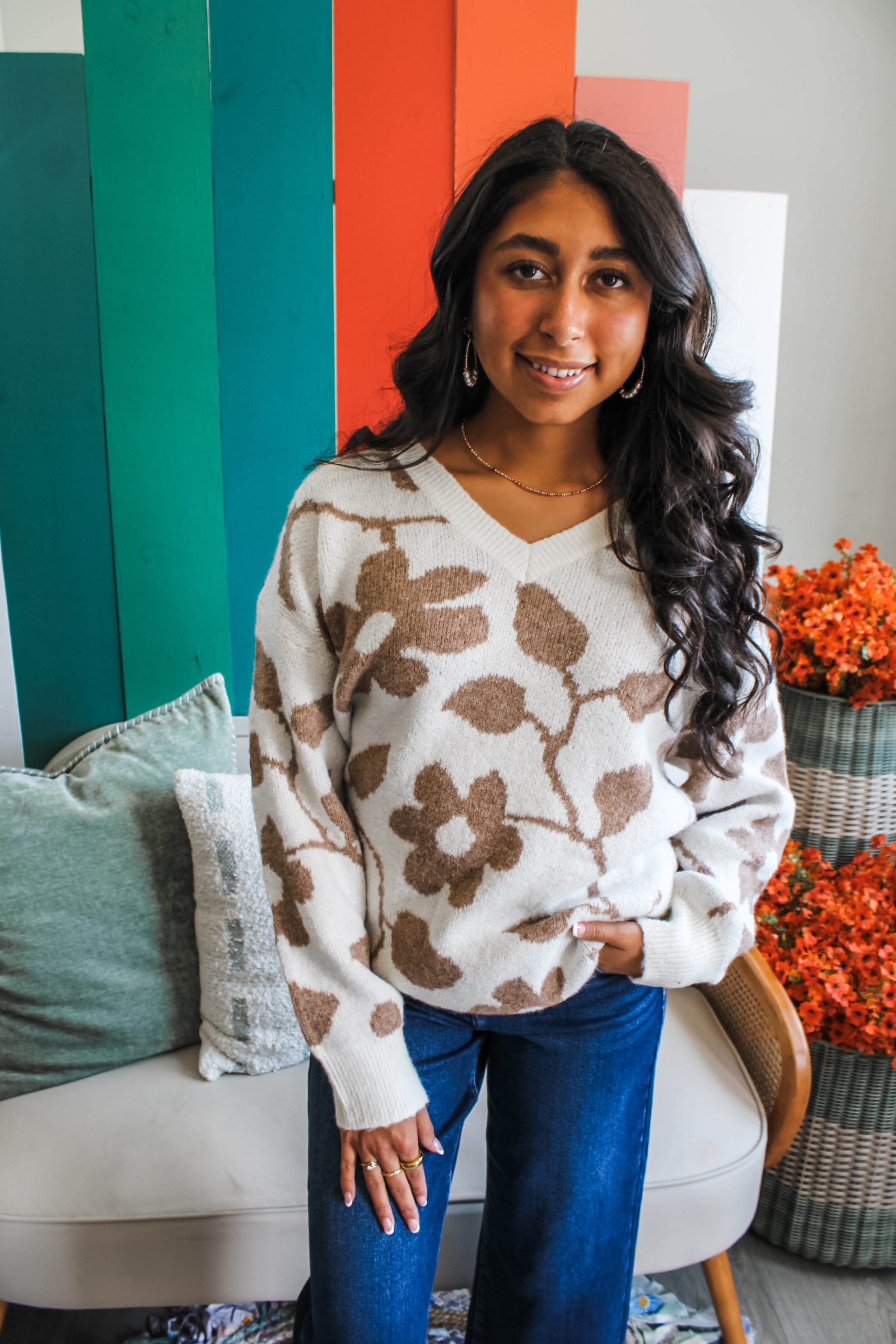 Autumn Blooms Sweater • Cream/Tan - FINAL SALE