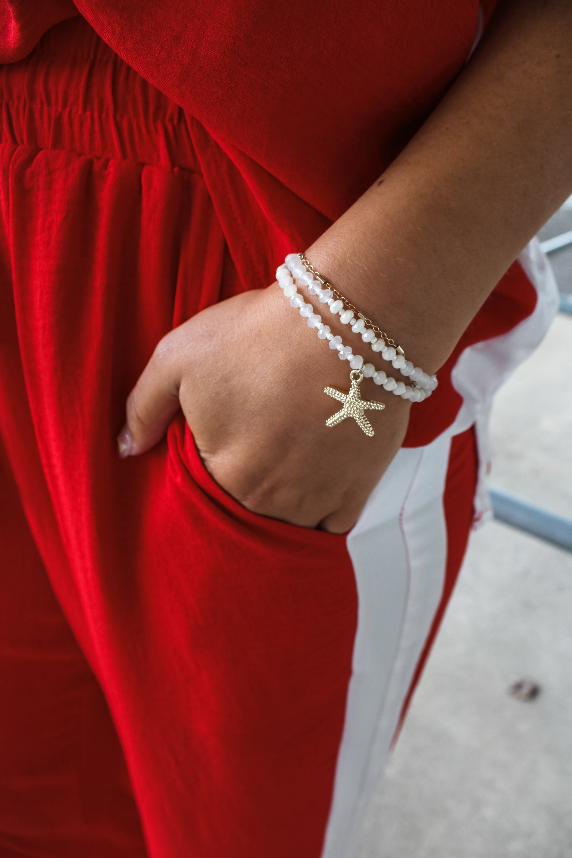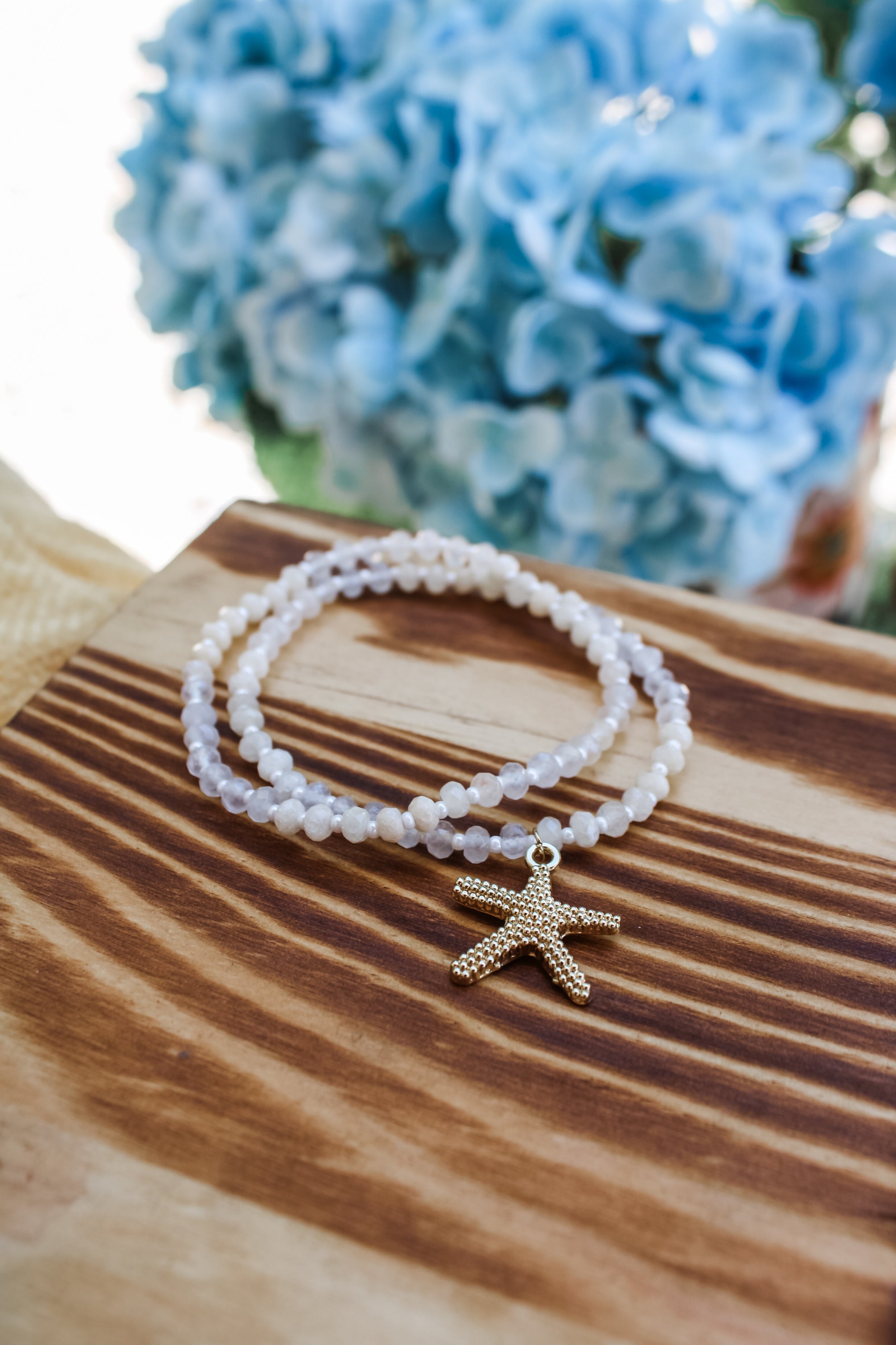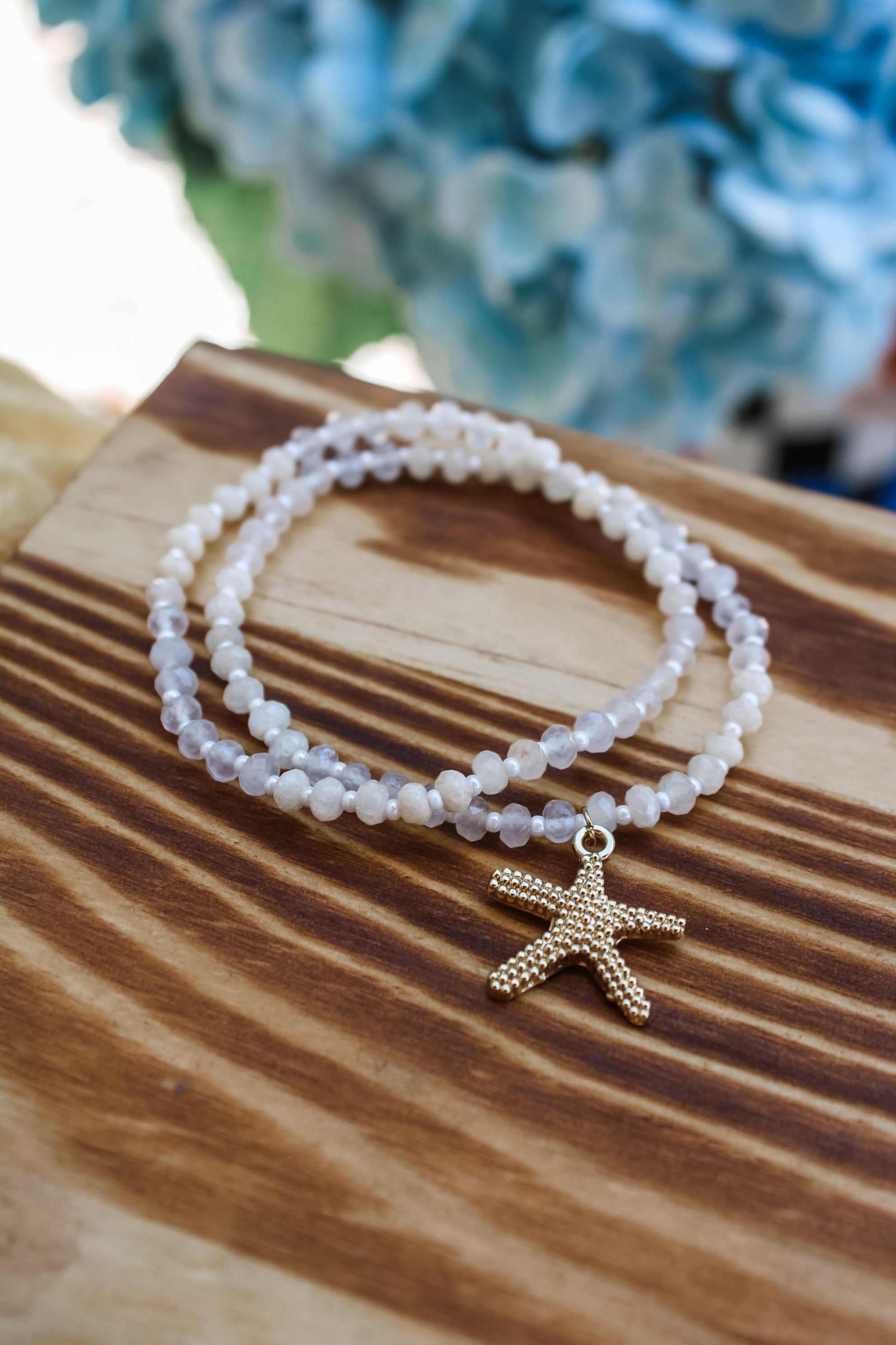Add a coastal chic touch to your summer looks! This stretch bracelet features a starfish charm for a seaside-inspired style that’s both trendy and timeless. Materials may have natural variations. Colors may vary from different viewing devices and lighting. Final sale item.