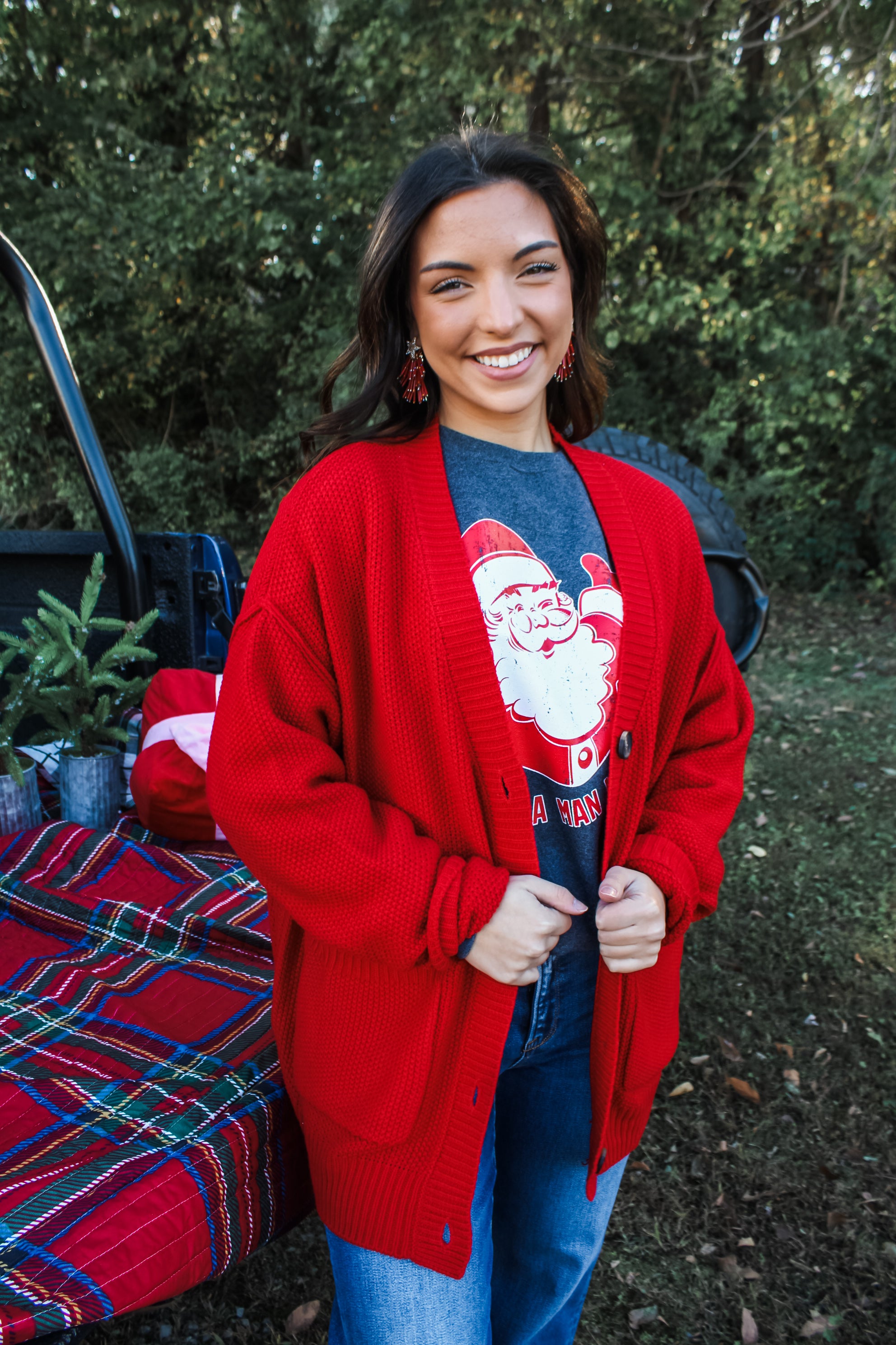 Chic layering essentials for a cozy holiday style! Crafted from a braided waffle knit, this button front cardigan is a versatile layering piece for any day of the week! Featured in a loose modern fit with a f neckline, double front pockets, drop shoes sleeves and contrast rib finishing.