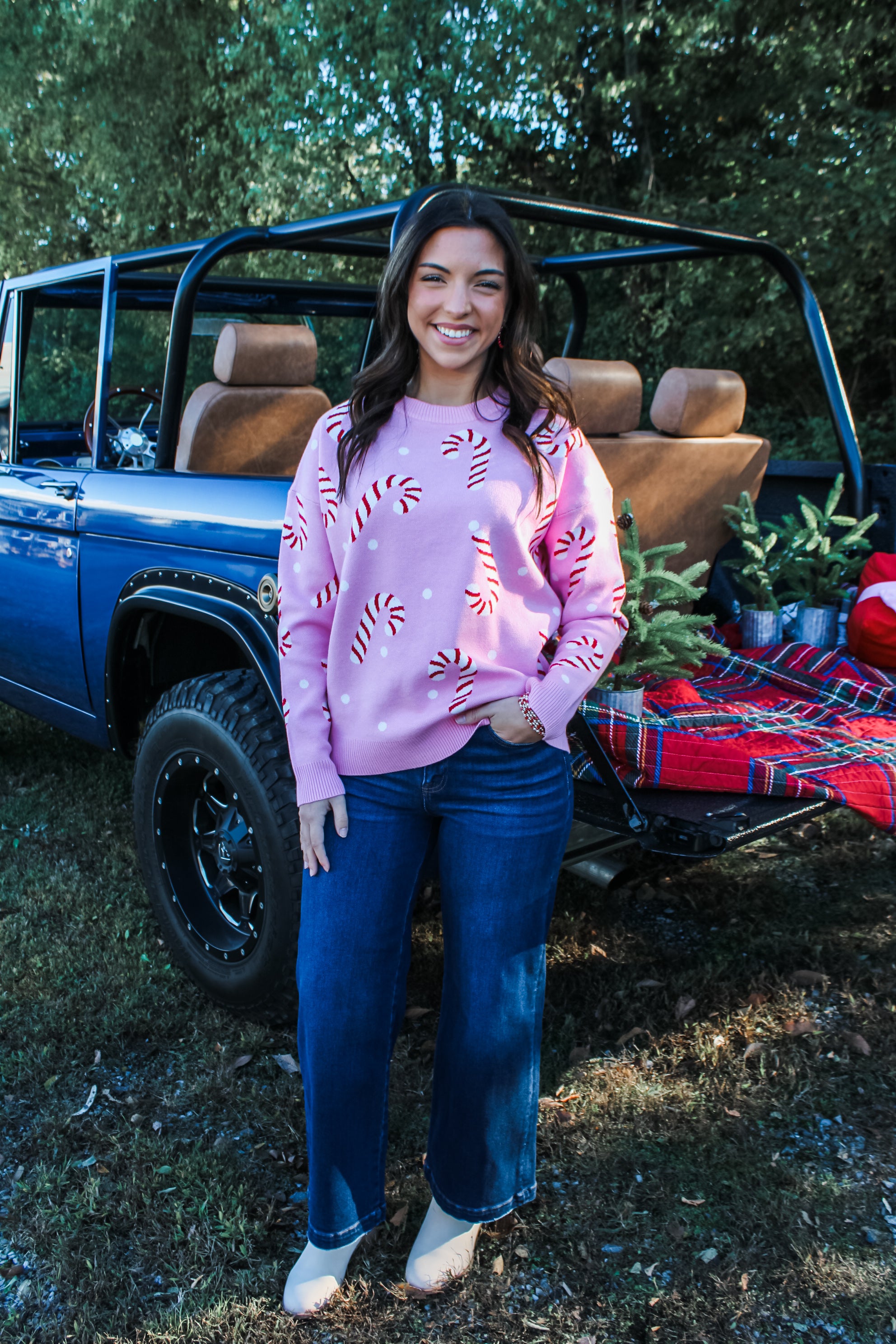Have a merry and bright holiday style! This classic candy cane sweater is a fun and cheerful look for work or play! Crafted from a soft heavyweight knit that drapes over the body beautifully, with a crew neckline, drop shoulder sleeves and contrast rib finishing. With a slouchy silhouette for a comfy and cozy fit.