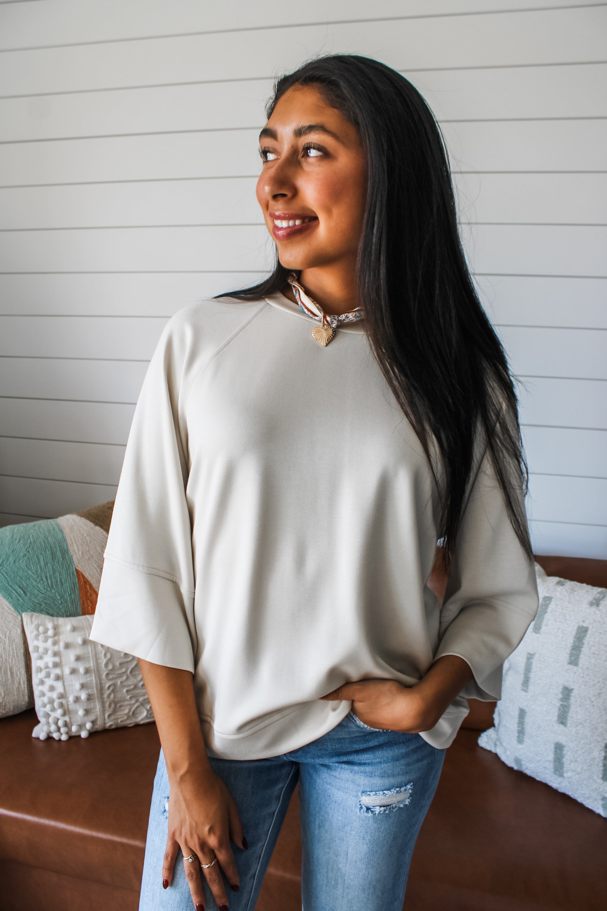 So easy and essential, this pullover is featured in a modern loose silhouette for the comfiest fit. The scuba knit fabrication provides a soft and smooth feel, while the classic crewneck and clean look make it a timeless staple you’ll keep reaching for.