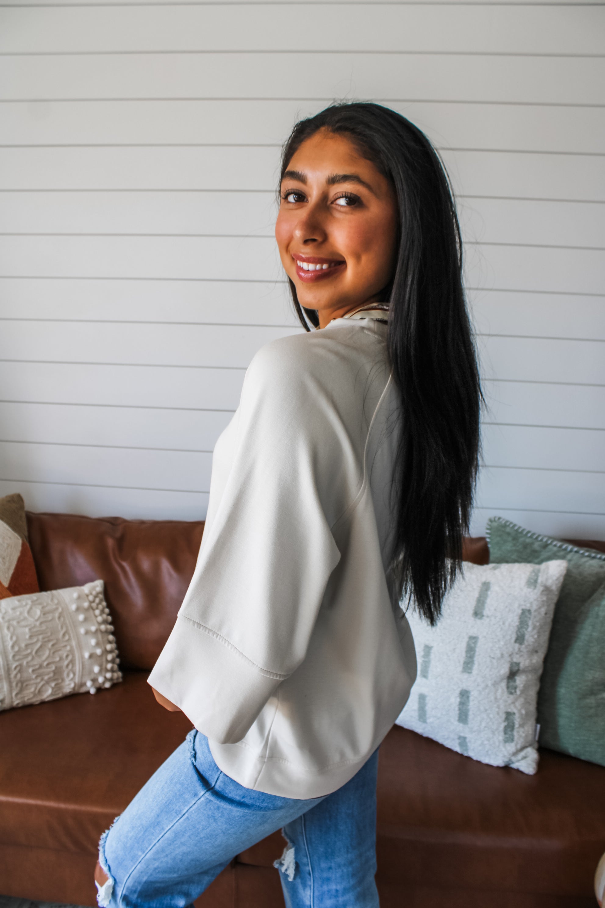 Styling tips: Pair it with trousers and flats for casual workdays, style with barrel leg jeans and ankle boots for city weekends, or toss over distressed denim and sneakers for gamedays.
