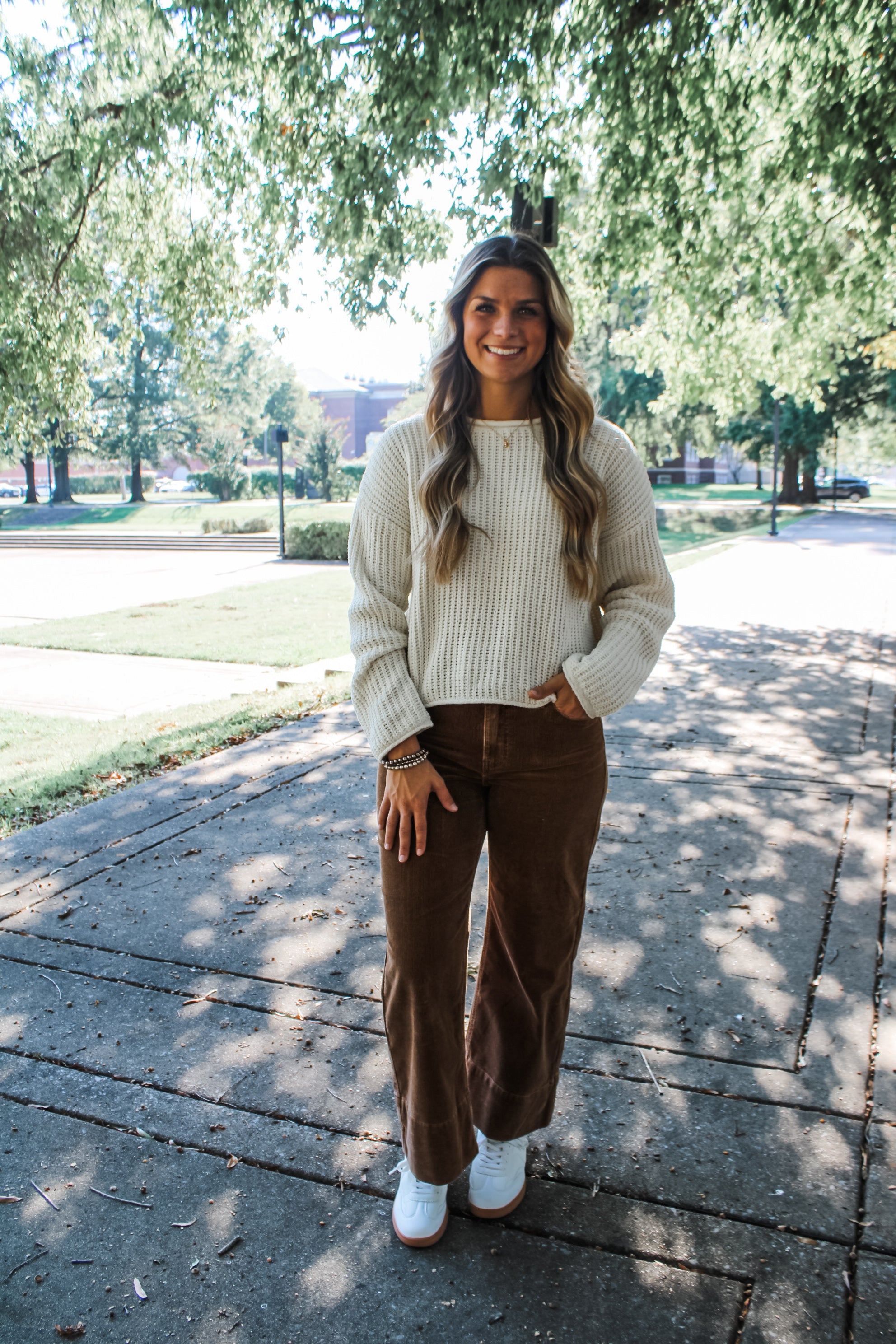 So cozy soft in a ribbed chenille knit, this sweater is an effortless classic. Featured in a relaxed silhouette with a crewneck, drop shoulder sleeves and rolled edge finishing. It’s a quintessential style you can dress up or down season after season.