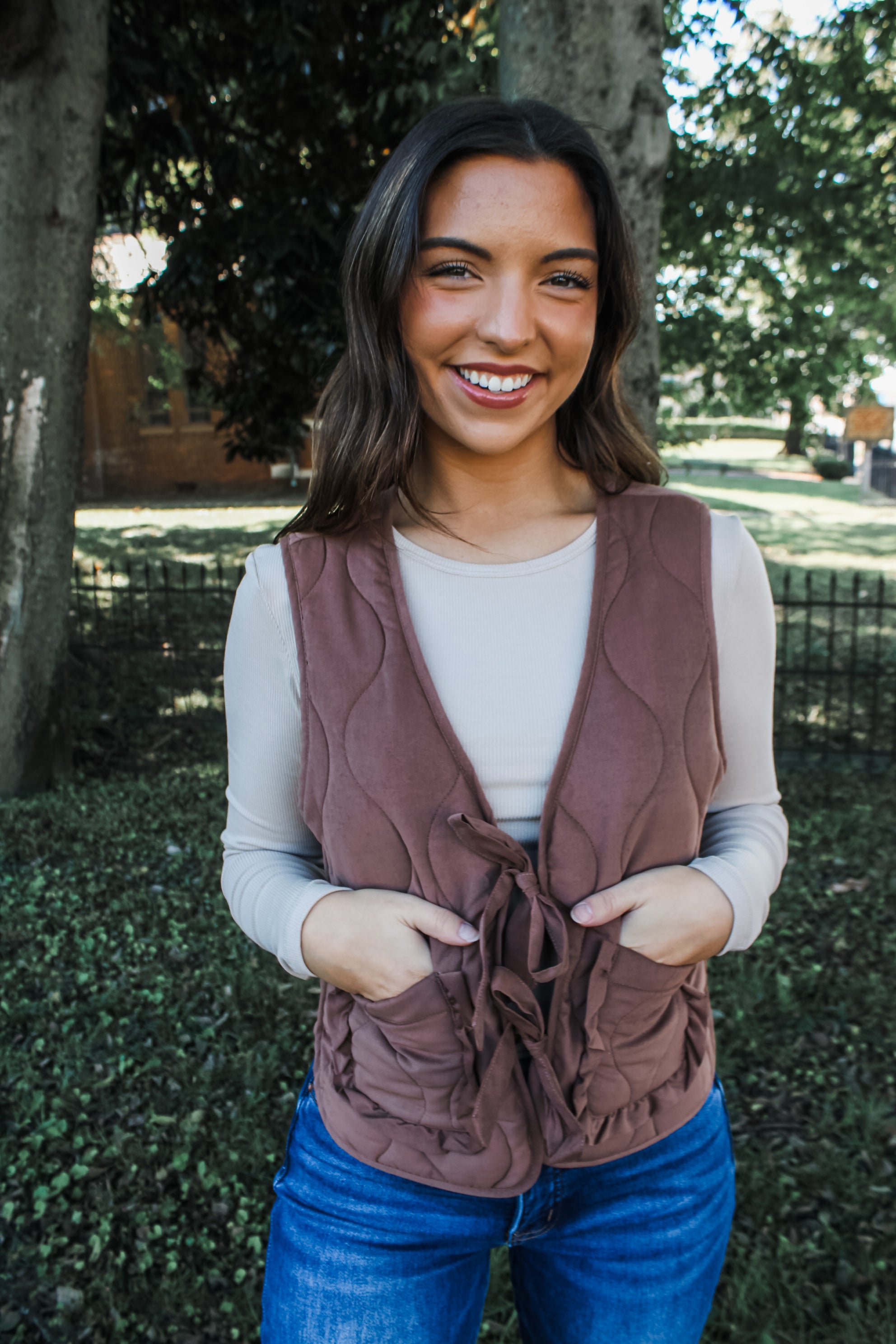 Tie It Together Quilted Bow Vest • Cocoa - FINAL SALE