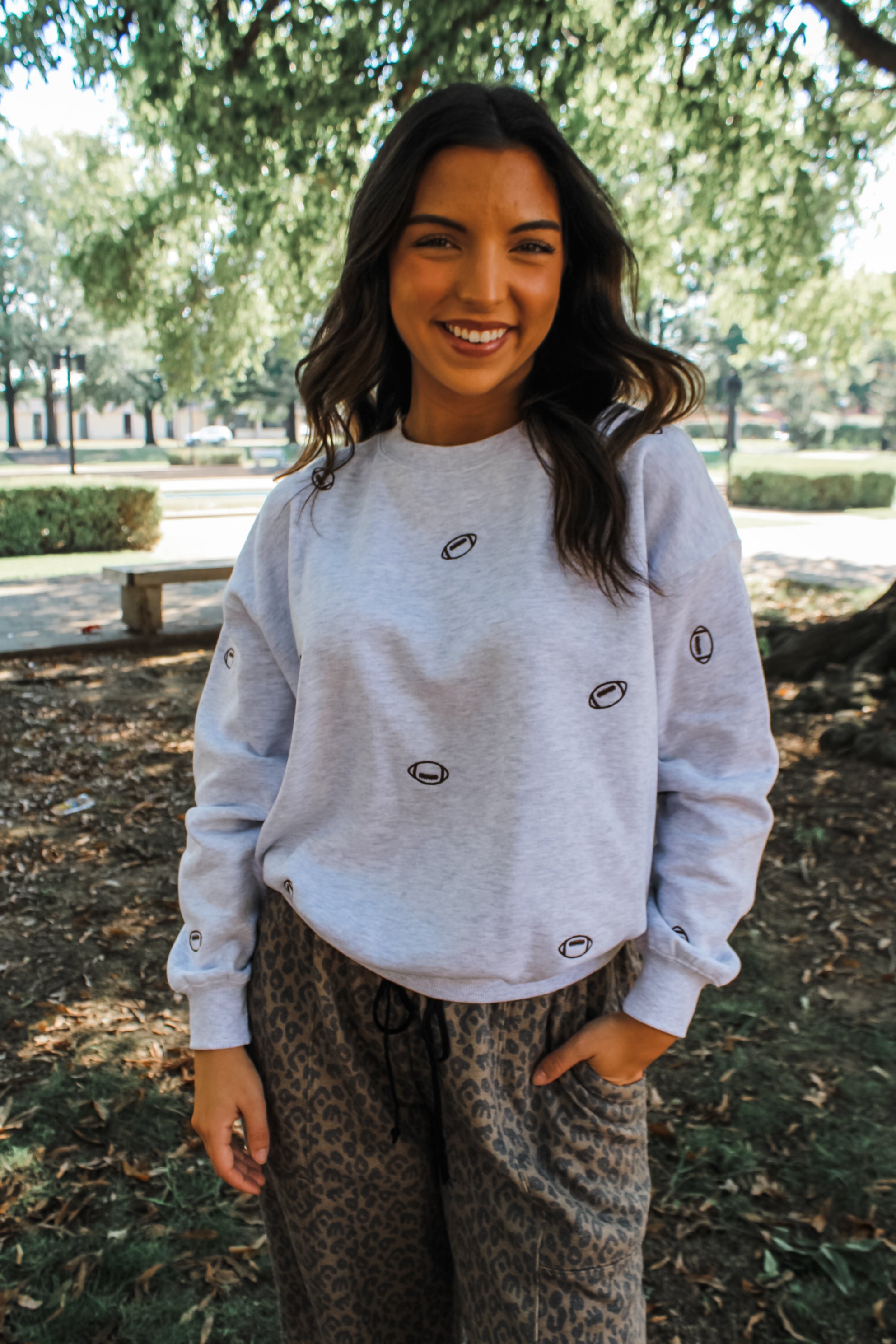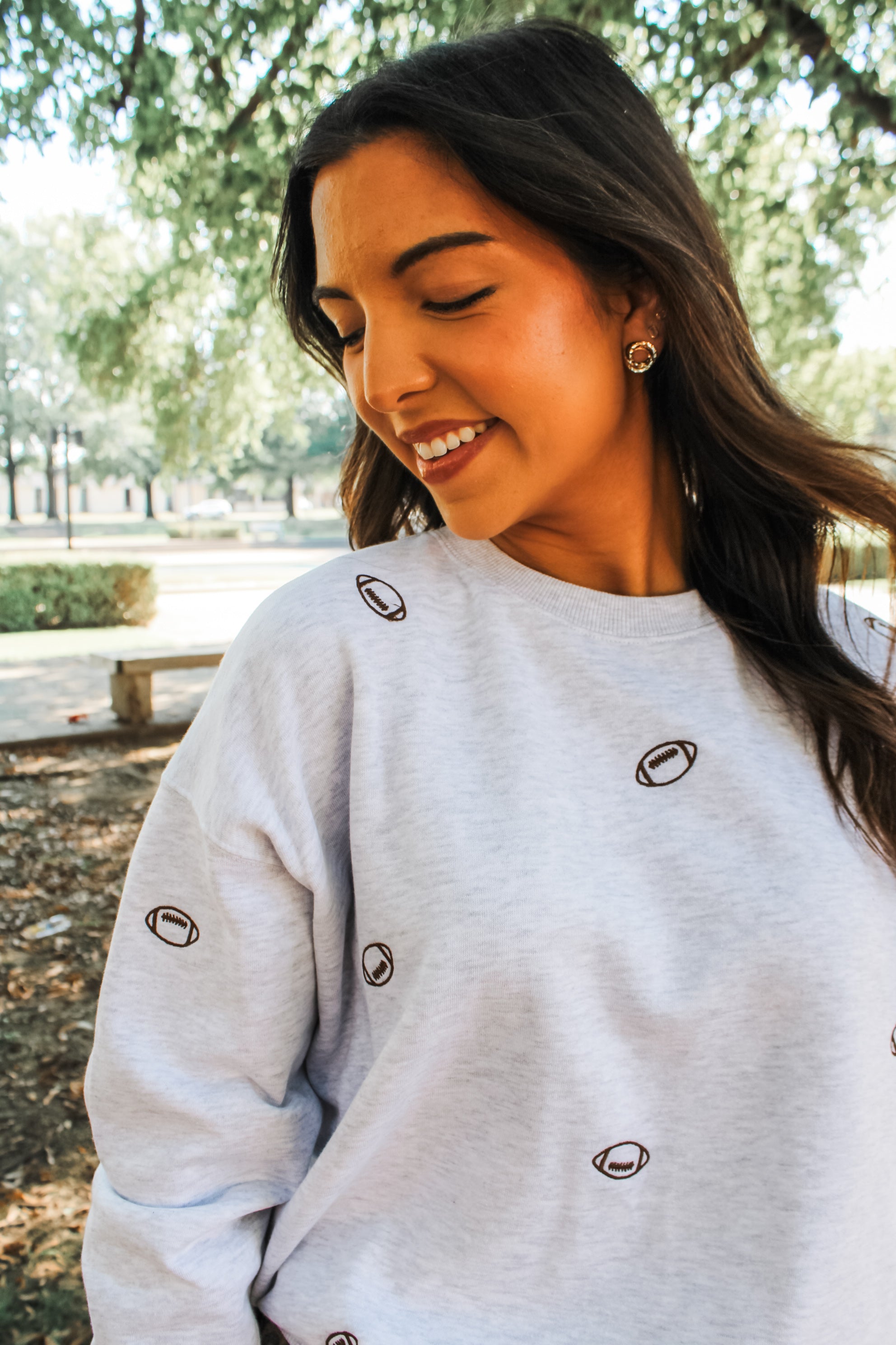 Touchdown Season Embroidered Pullover • Ash Grey - FINAL SALE