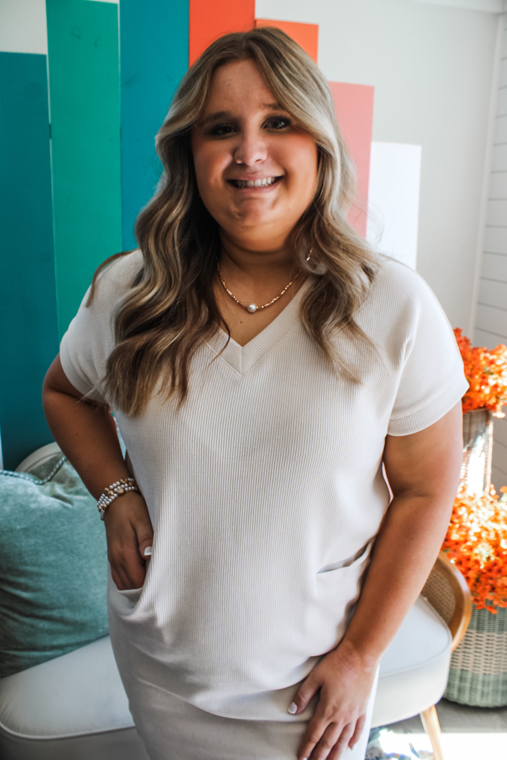 So easy and comfortable, this pocket dress will be your new style favorite! Featured in a velvety chenille fabrication, this chic staple is a truly effortless look whether you’re going out of town, running errands or attending fall events! In a relaxed straight silhouette with a v neckline, dolman sleeves and oh-so-essential front slit pockets.